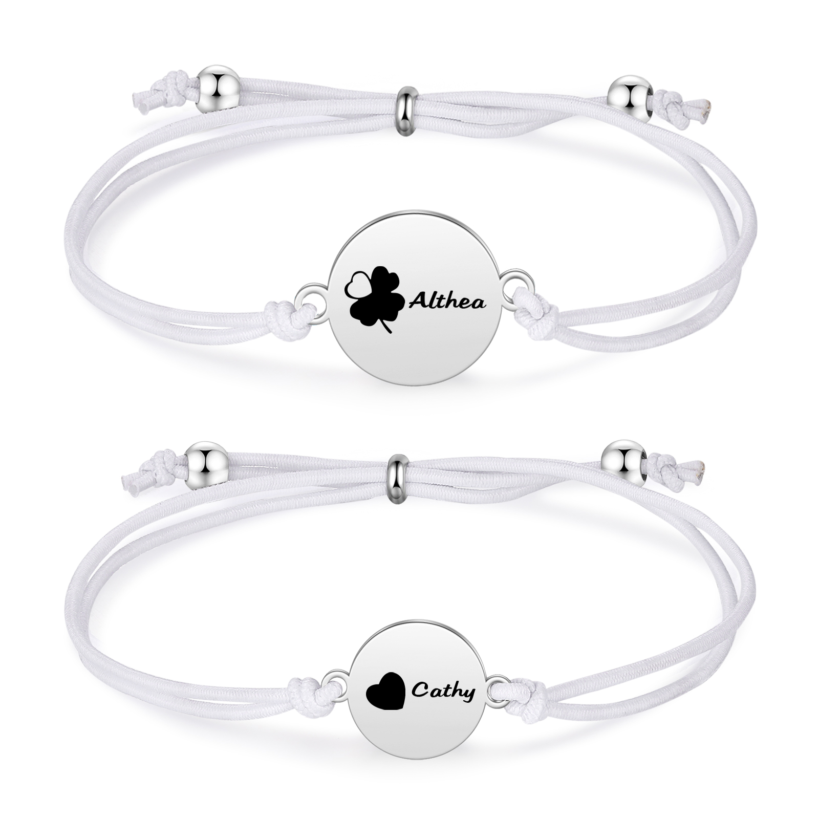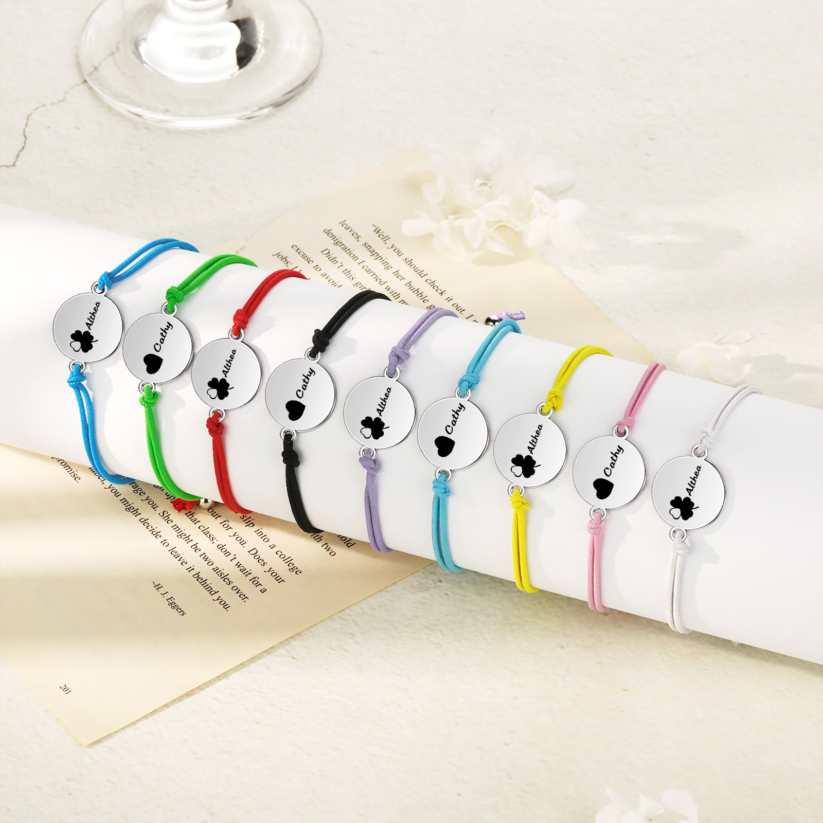 2-PCS Personalized Elastic Cord Bracelet with Love Pattern, Customized with 2 Names, Gift for Daughter