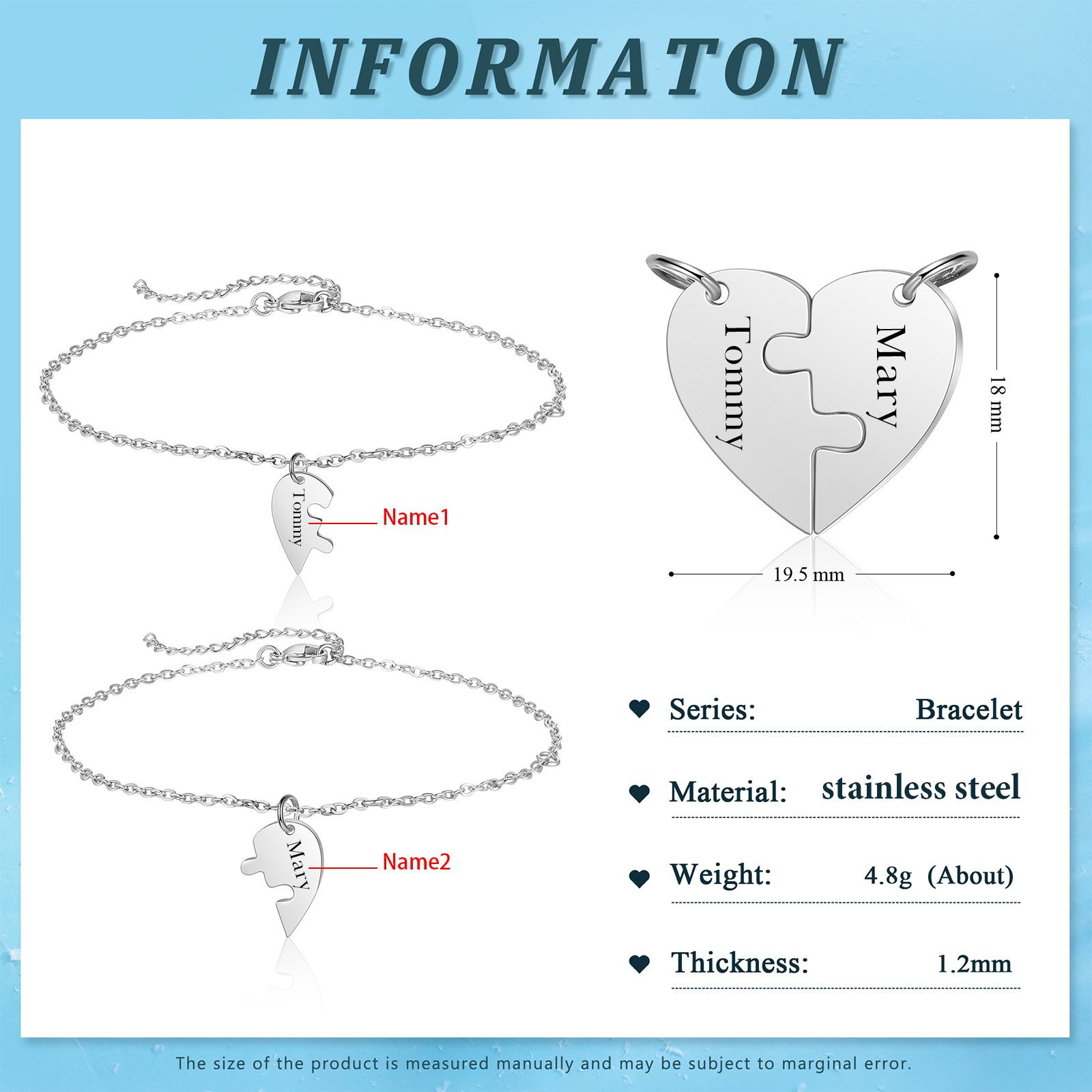2 Names - Personalized Custom Name Puzzle Bracelet Stainless Steel Love Bracelet Set for Family