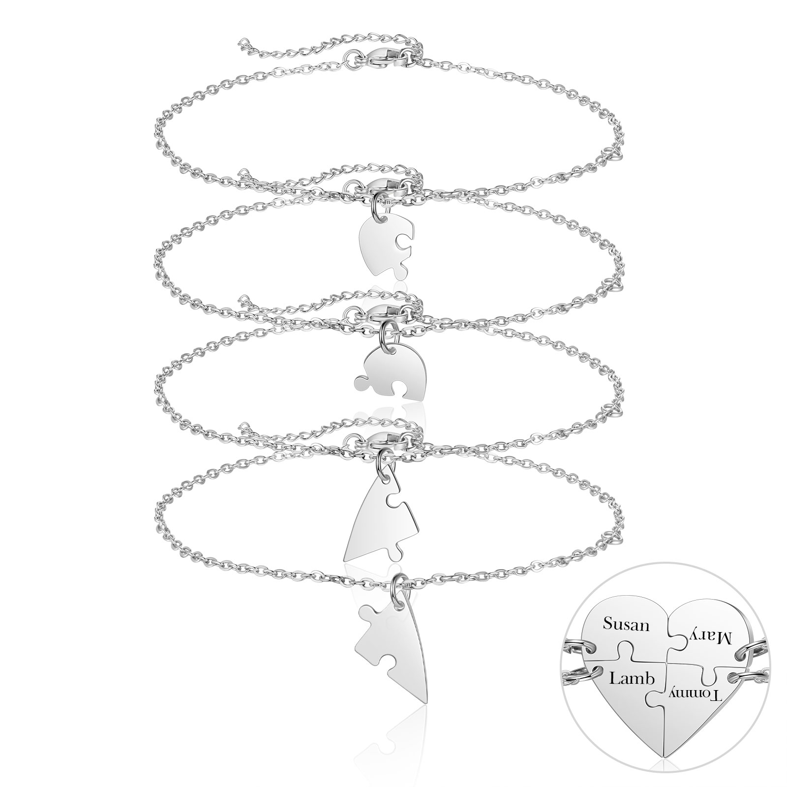 4 Names - Personalized Custom Name Puzzle Bracelet Stainless Steel Love Bracelet Set for Family