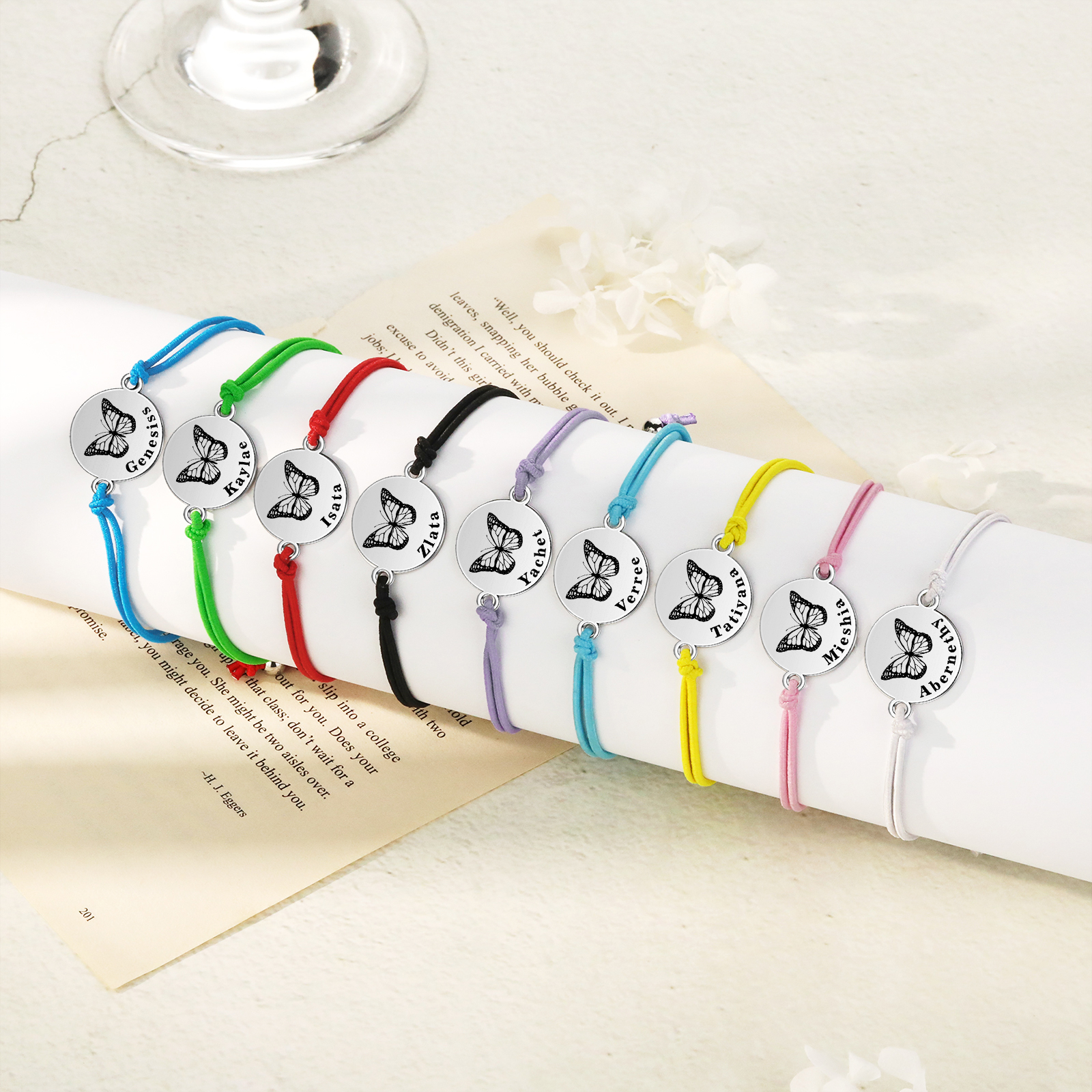 Personalized Name Braided Elastic Rope Stainless Steel Butterfly Bracelet, A Back-To-School Gift For Daughter