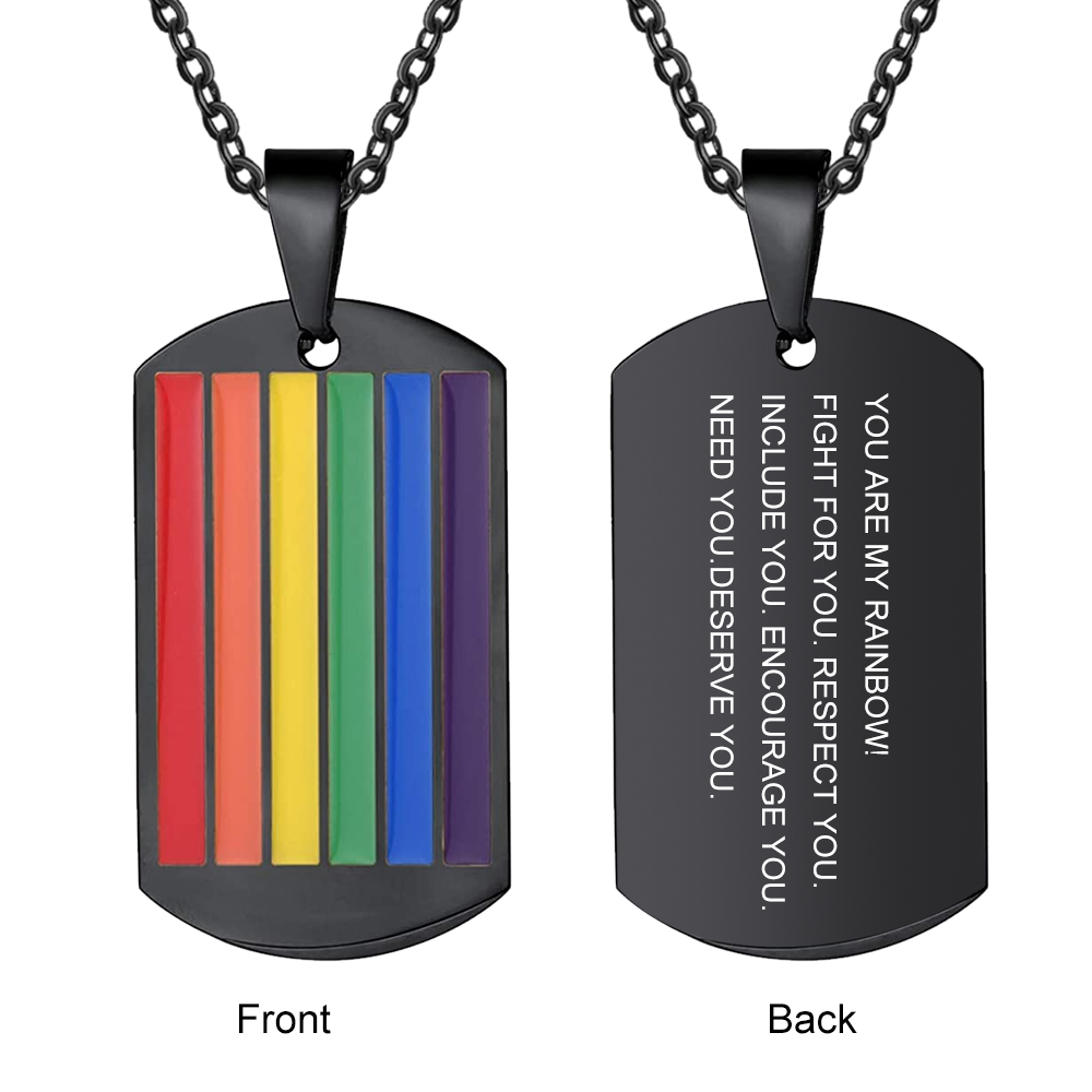 Rainbow Bar Necklace Cuban Chain LGBT Pride Gifts