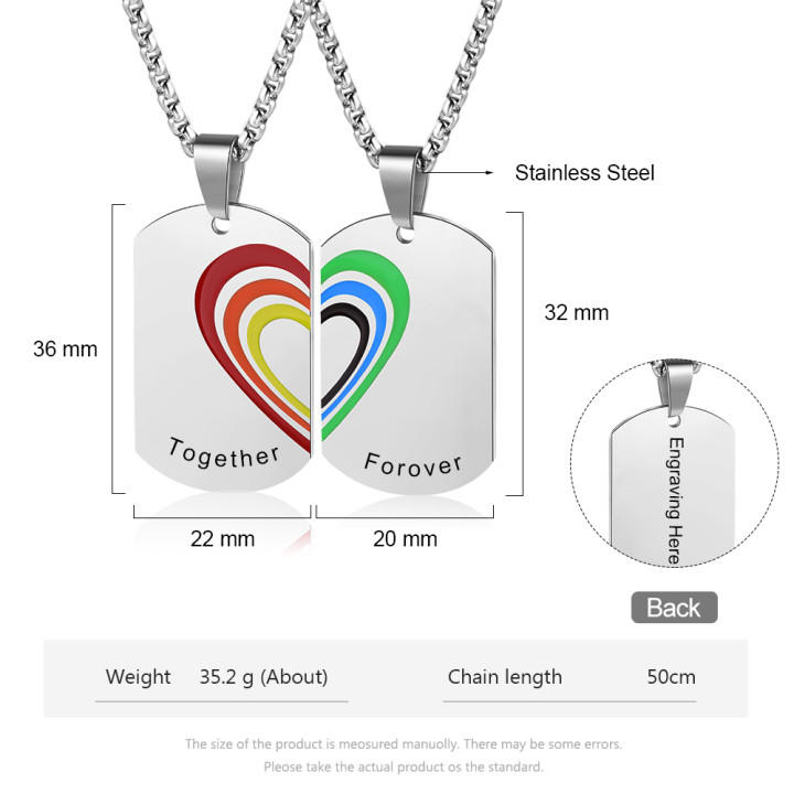 2 PCS Personalized Rainbow Bar Heart Necklace Set LGBT Pride Gifts