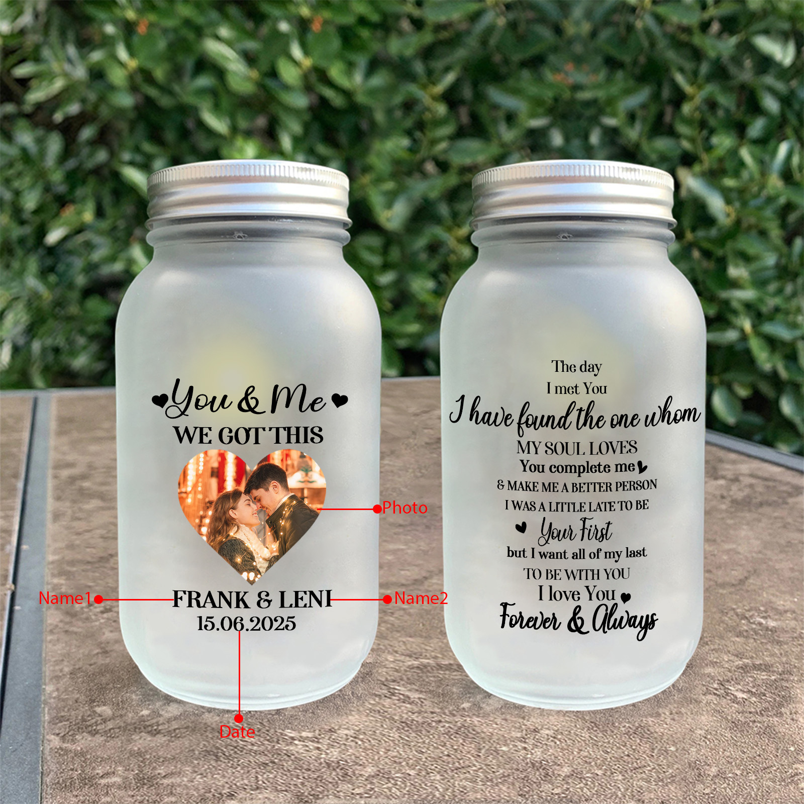 Personalized Couple Photo Solar Mason Jar