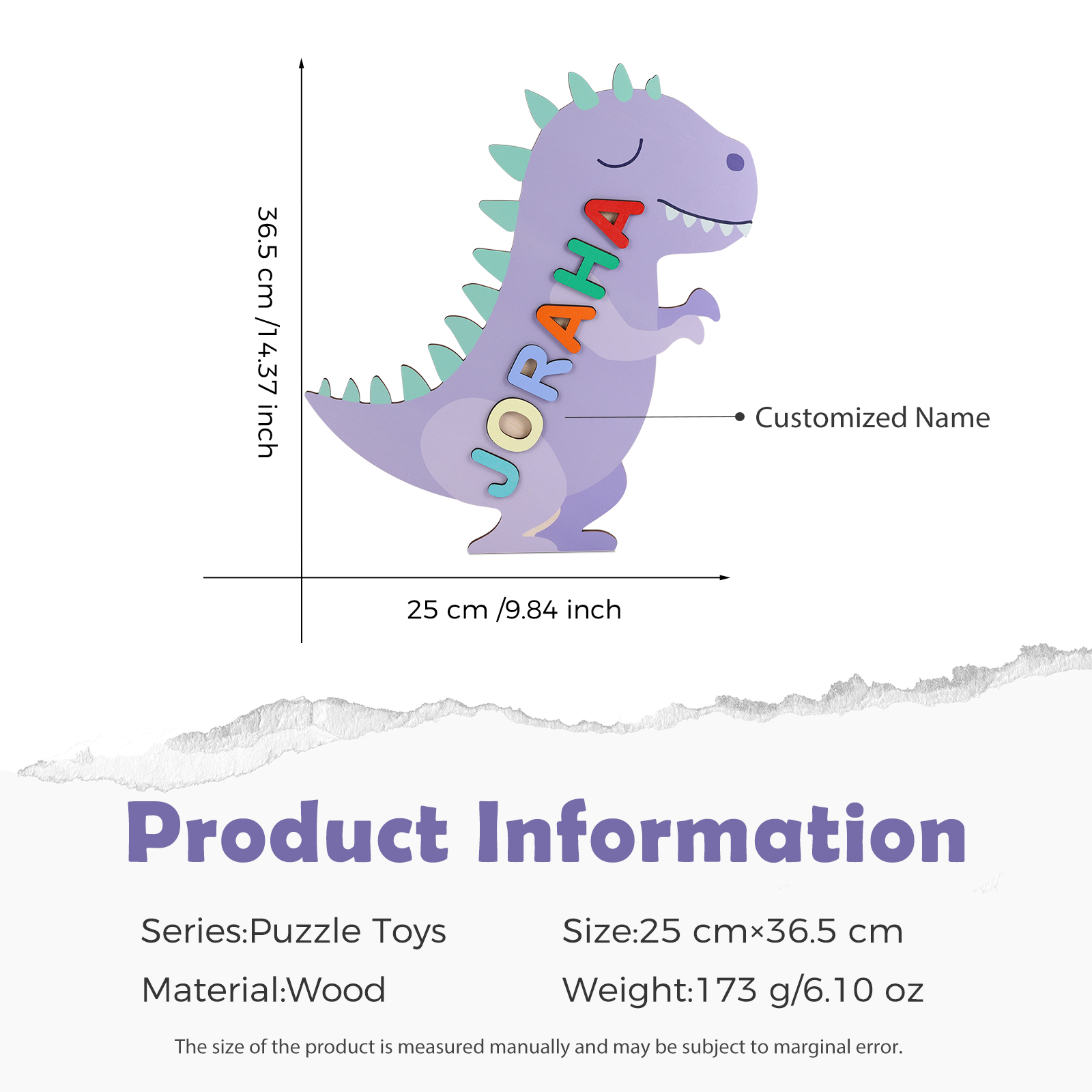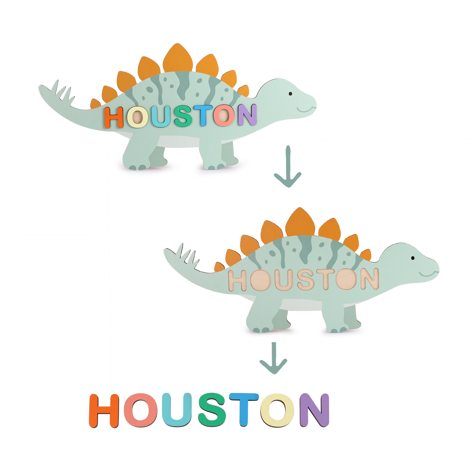 Personalized Wooden Dinosaur Name Puzzle Educational Gifts for Toddlers