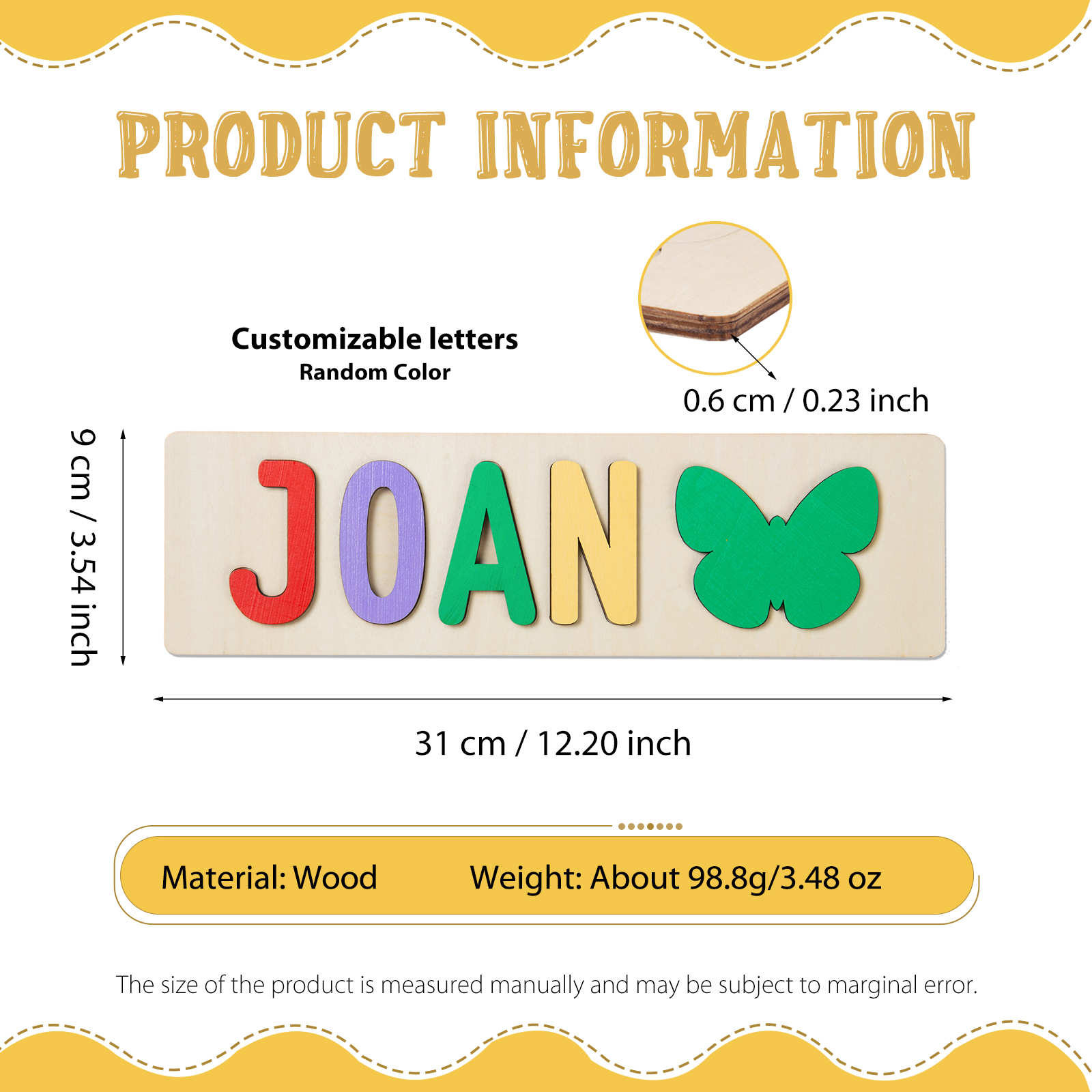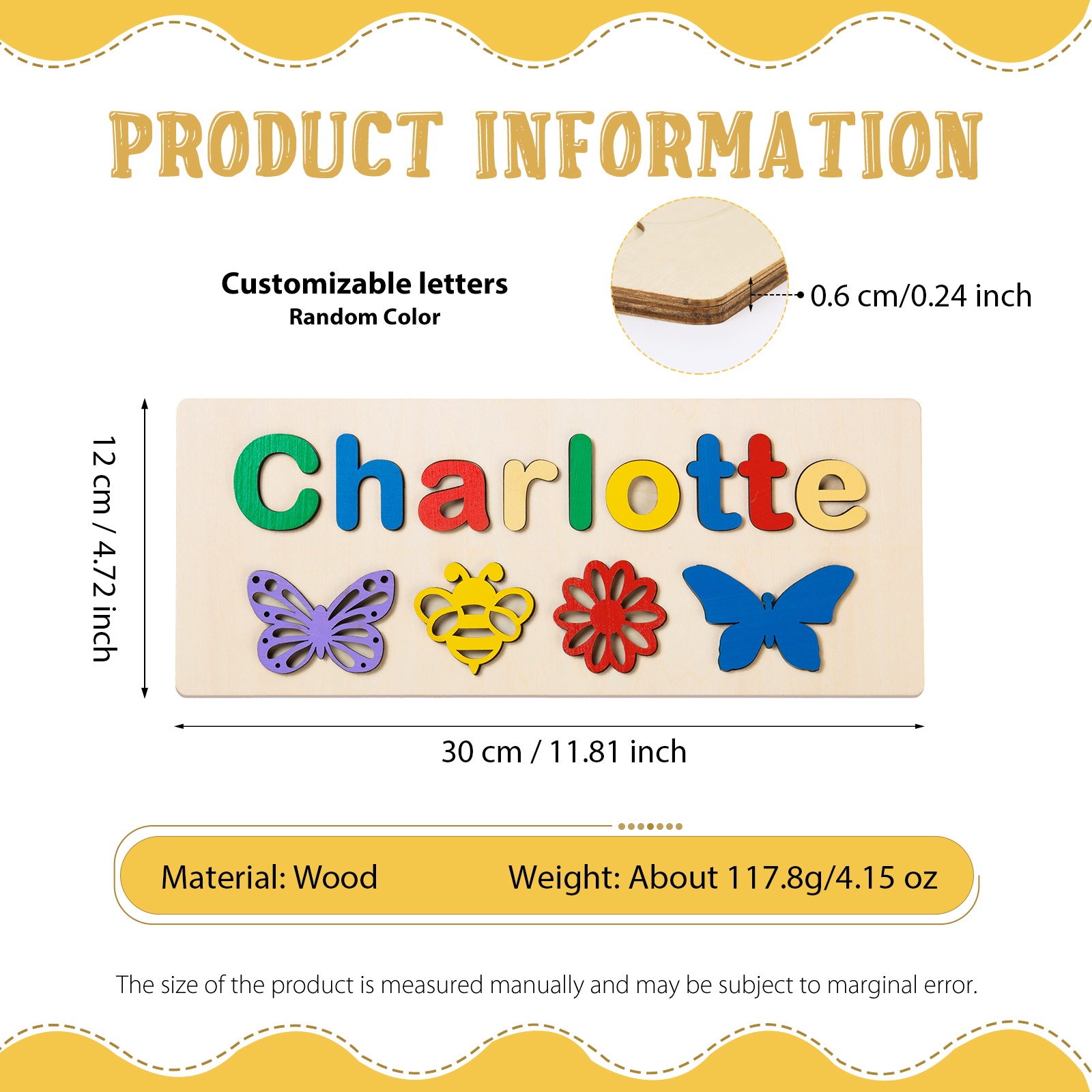 Customized Kid's Wooden Name Puzzle Toy for Toddlers Early Learning Child Toy