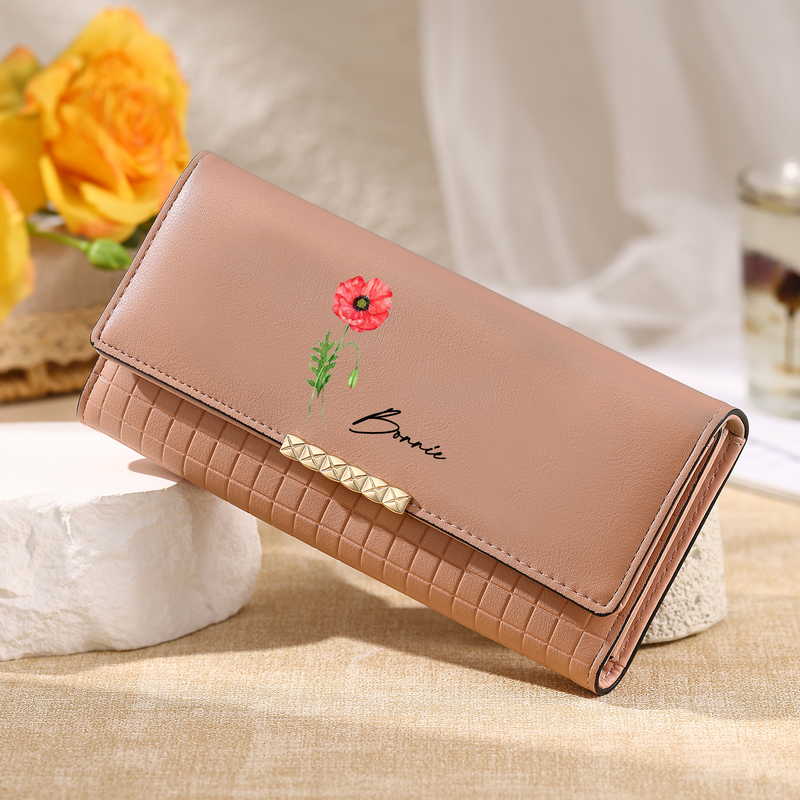 Personalized Women Long Wallet Custom With 1 Name And Birth Flower