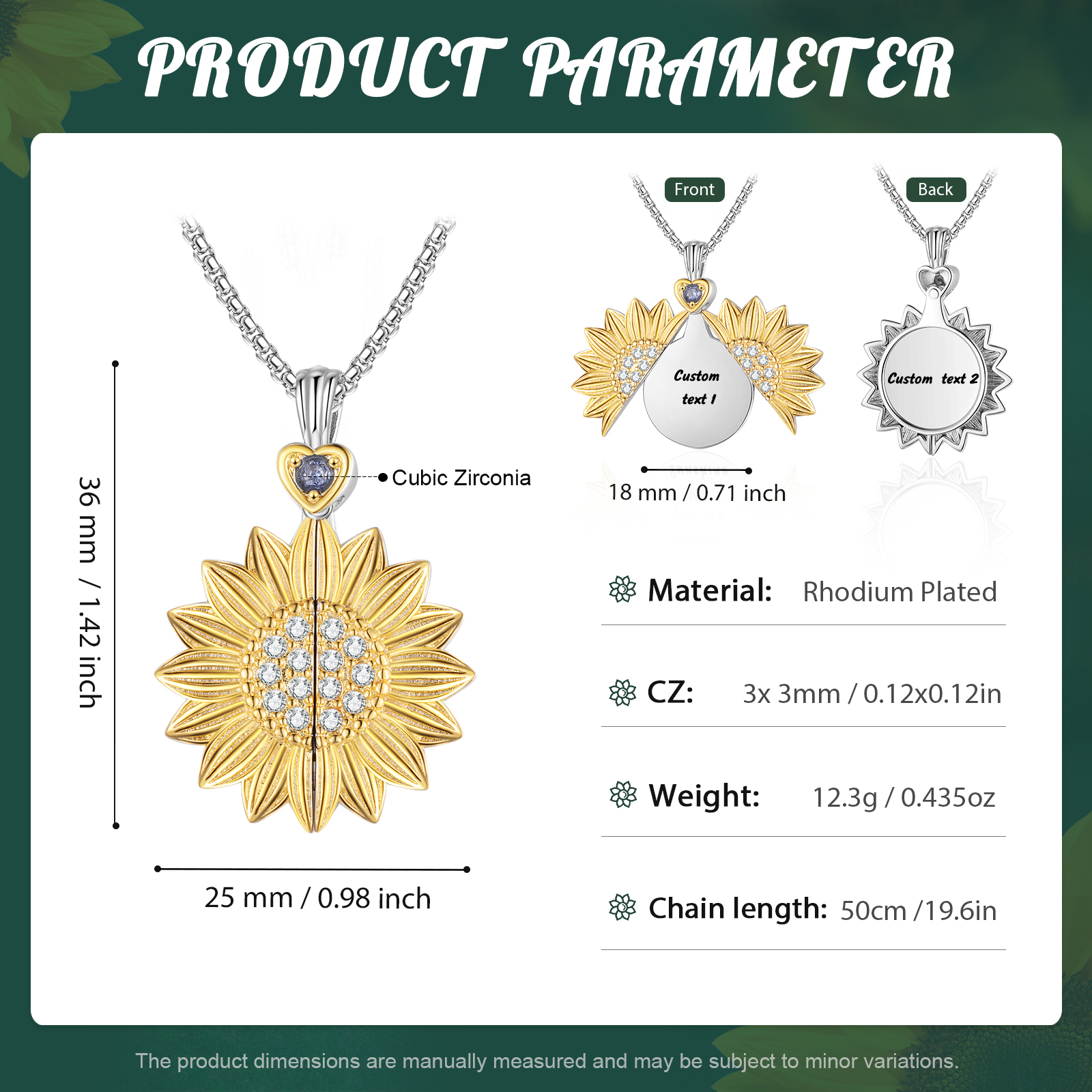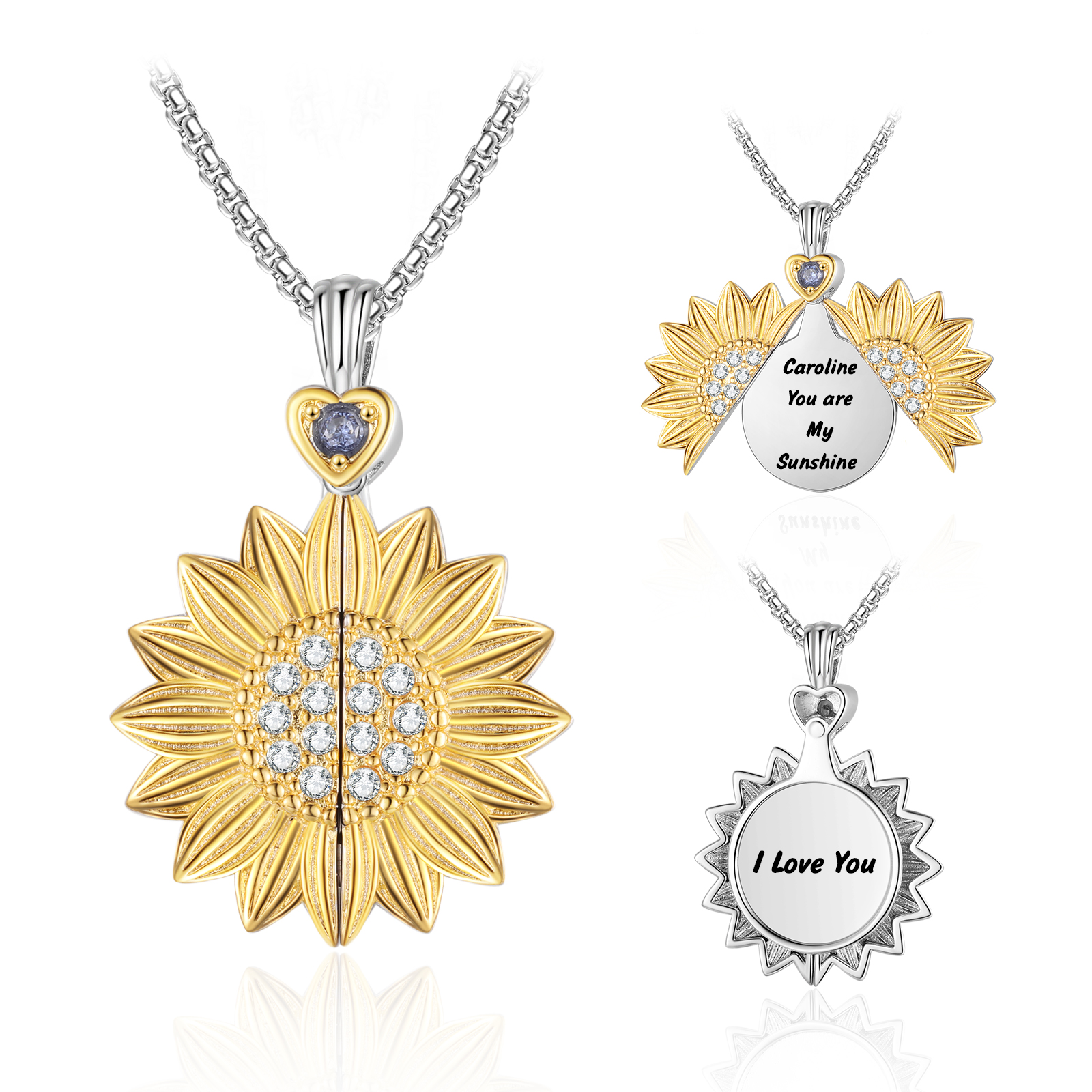 Personalized Engraved Cubic Zirconia Flip-Open Sunflower Necklace — Both sides can be engraved.