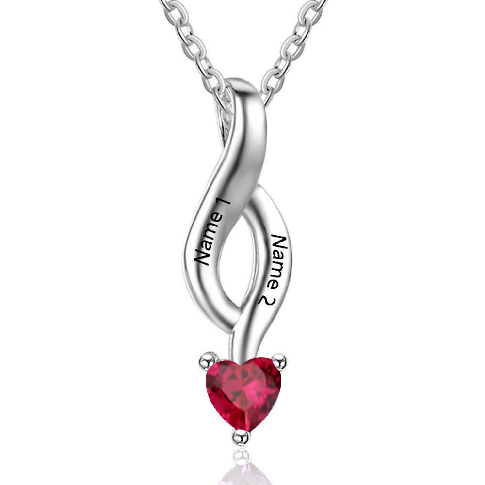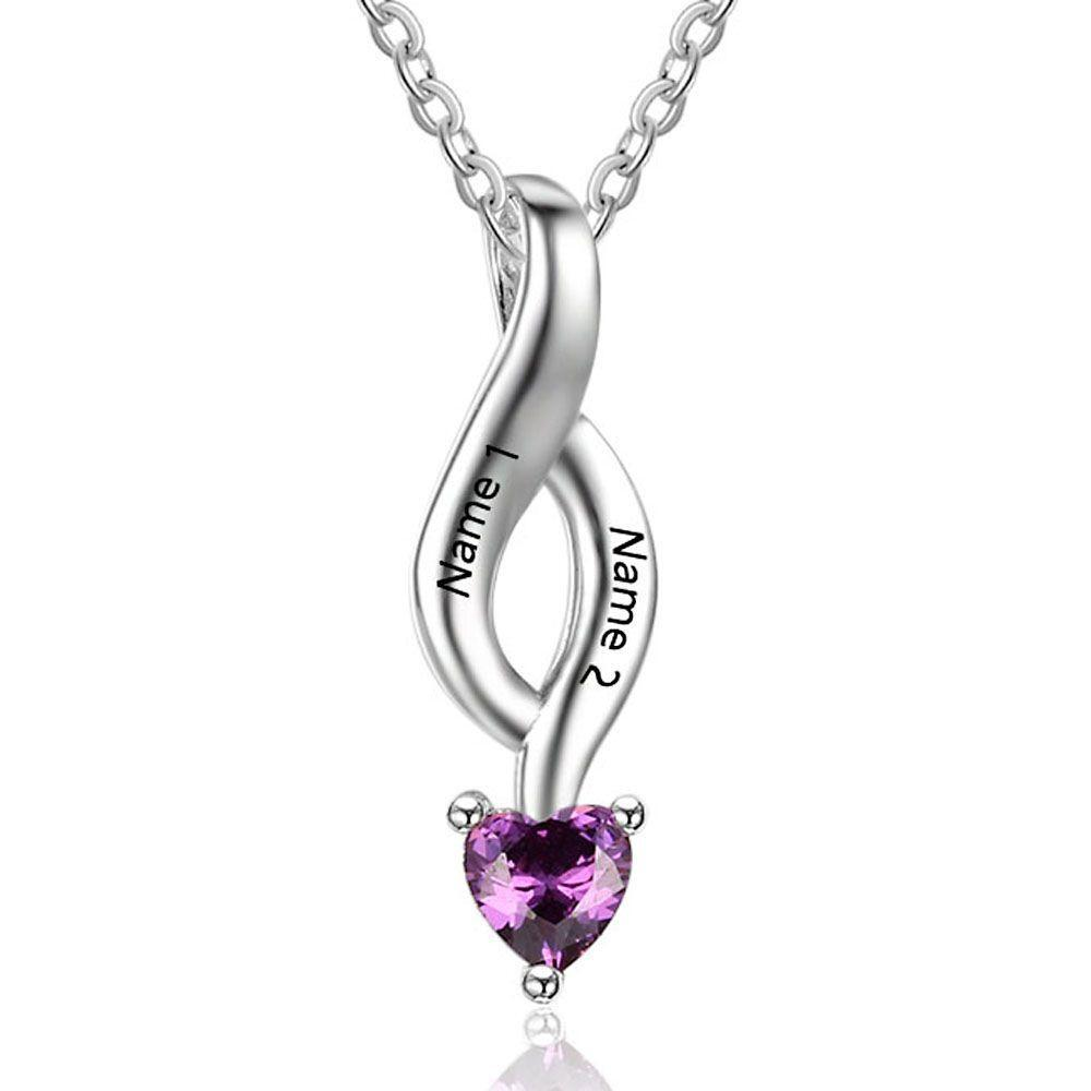 Personalized Heart Necklace With 2 Birthstones Engraved Names Gift For Her