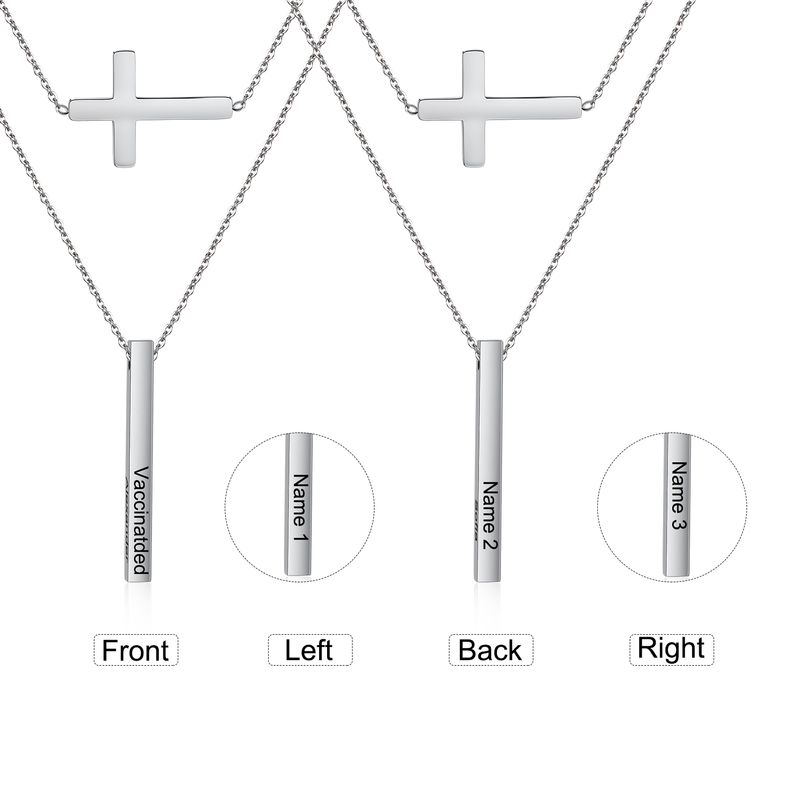 Vaccinated-Custom Cross Necklace-Personalized Cuboid Name Necklace