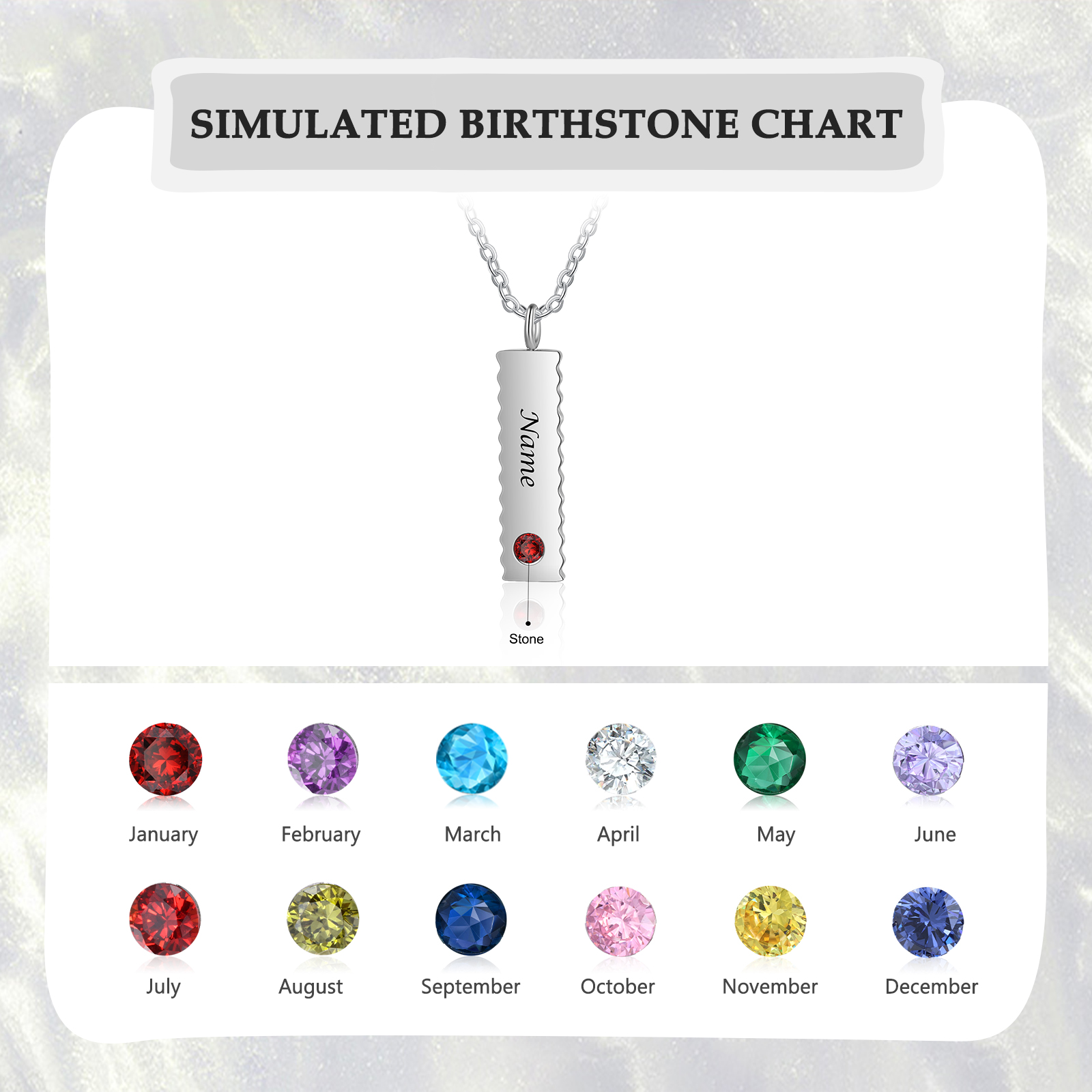 Personalized Bar Necklace with Birthstones Customized 1 Name Simple Necklace