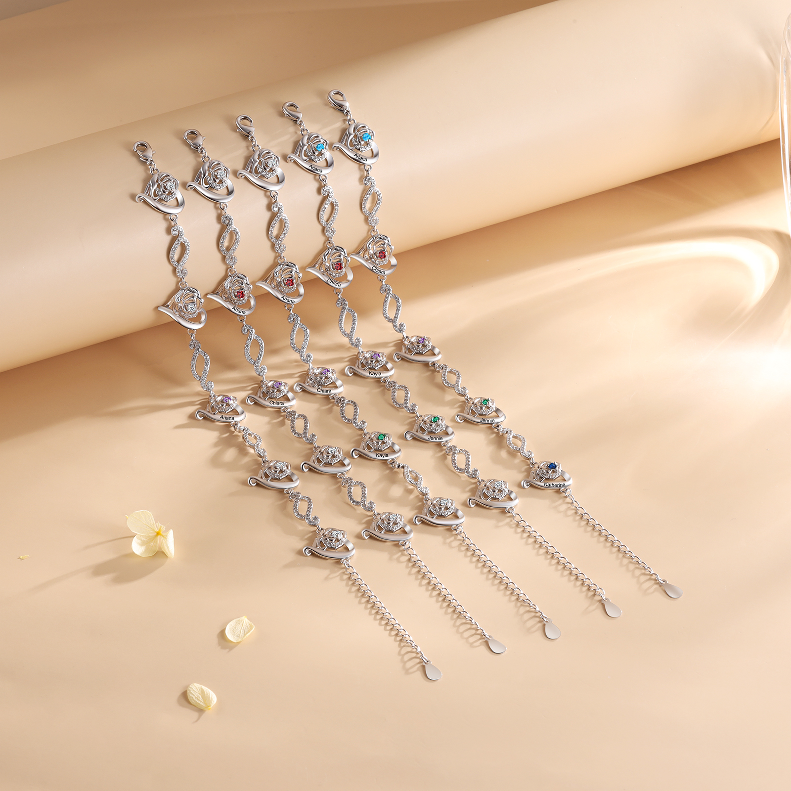 Personalized Rose Bracelet With 1 Birthstone Custom Names Bracelet Gift For Women