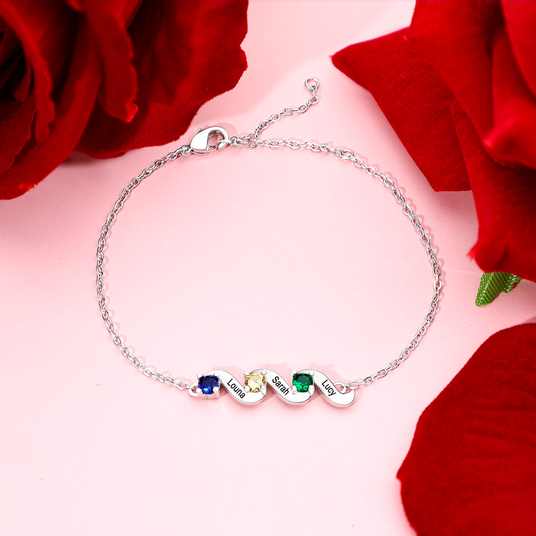 3 Names - Personalized Birthstone and Name Beautiful Bracelet Gift for Her