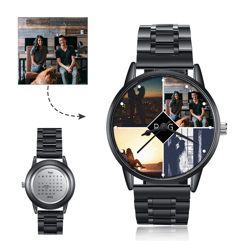 Personalized Photo Watch Custom 4 Photos Mechanical Watch Date Keepsake Gifts for Him