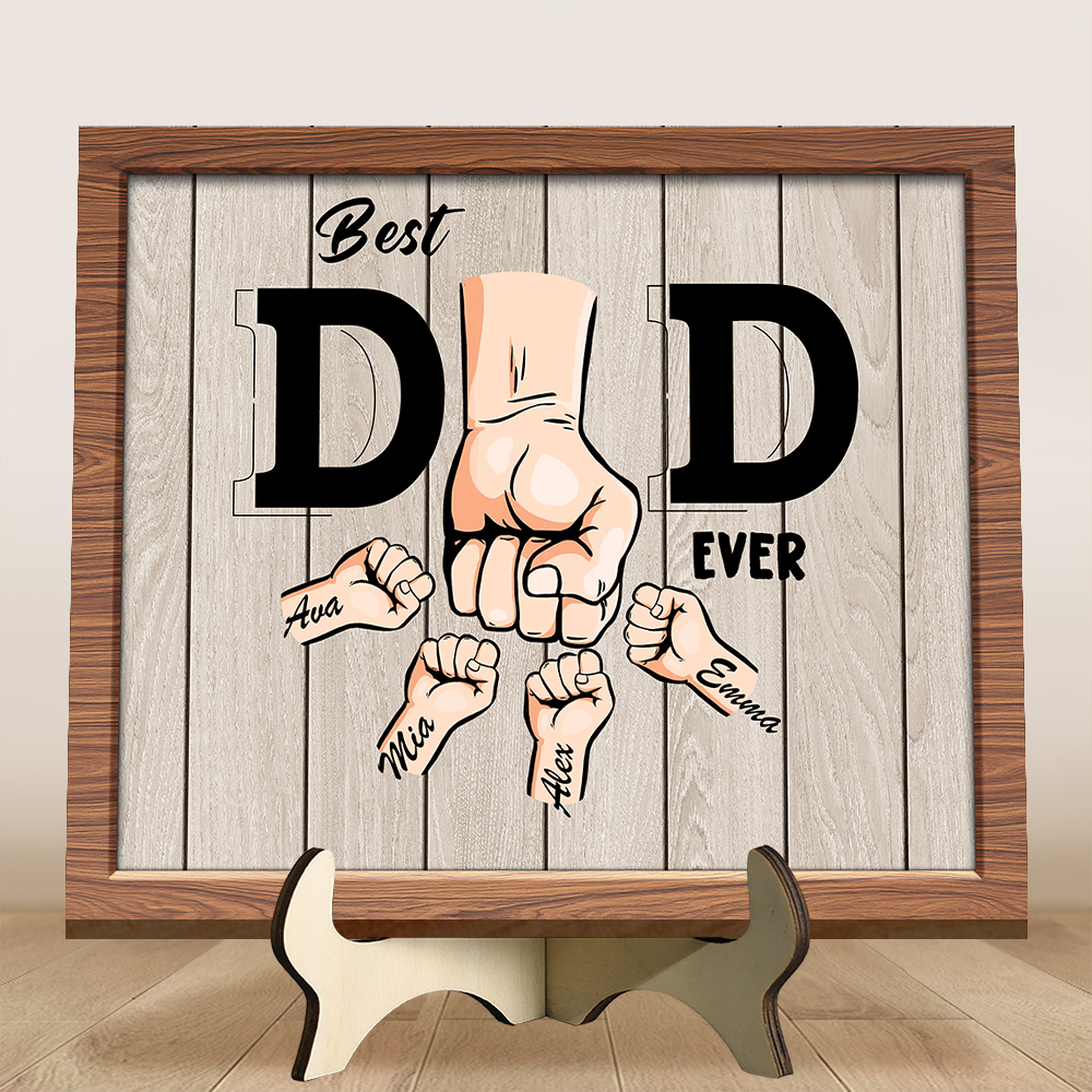 1-6 Names and Fists - Personalized Wooden Plaque with “Best Dad Ever” artwork Fathers Day Gift | Jessemade