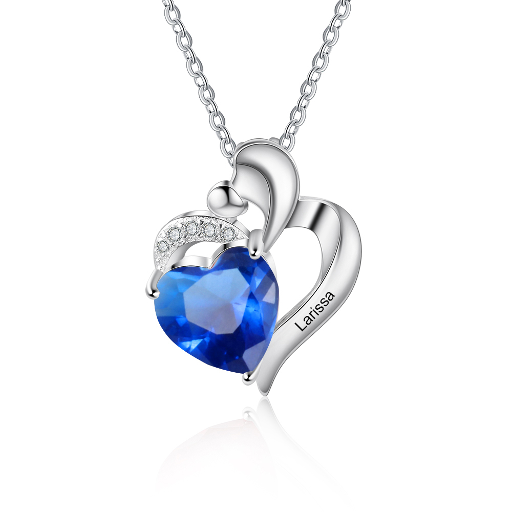 September Birthday Gift Personalized Heart Necklace With 1 birthstone Engraved Names Gift For Women