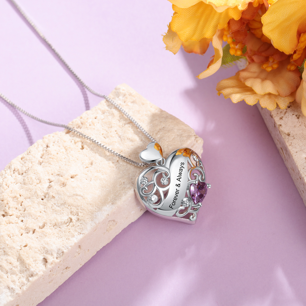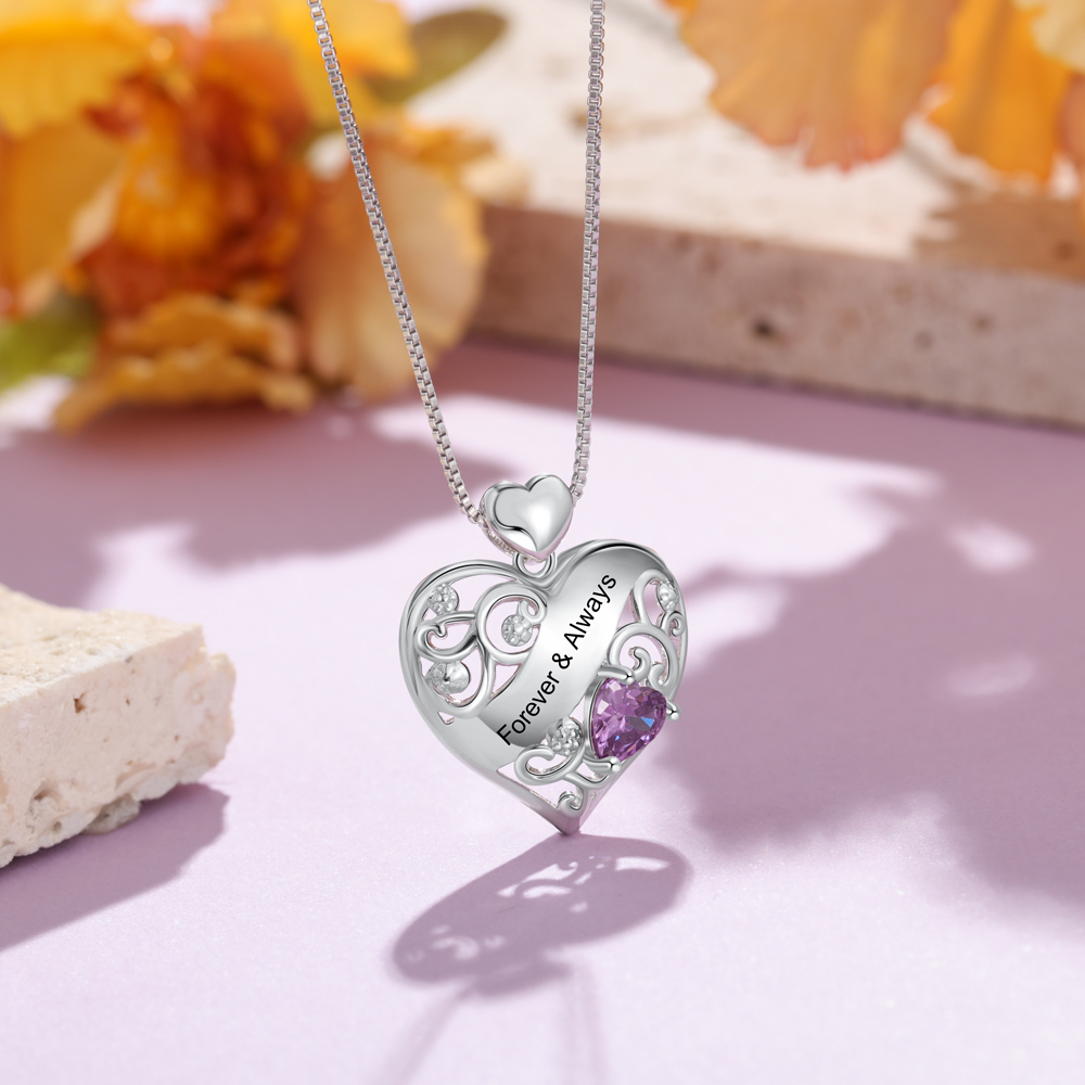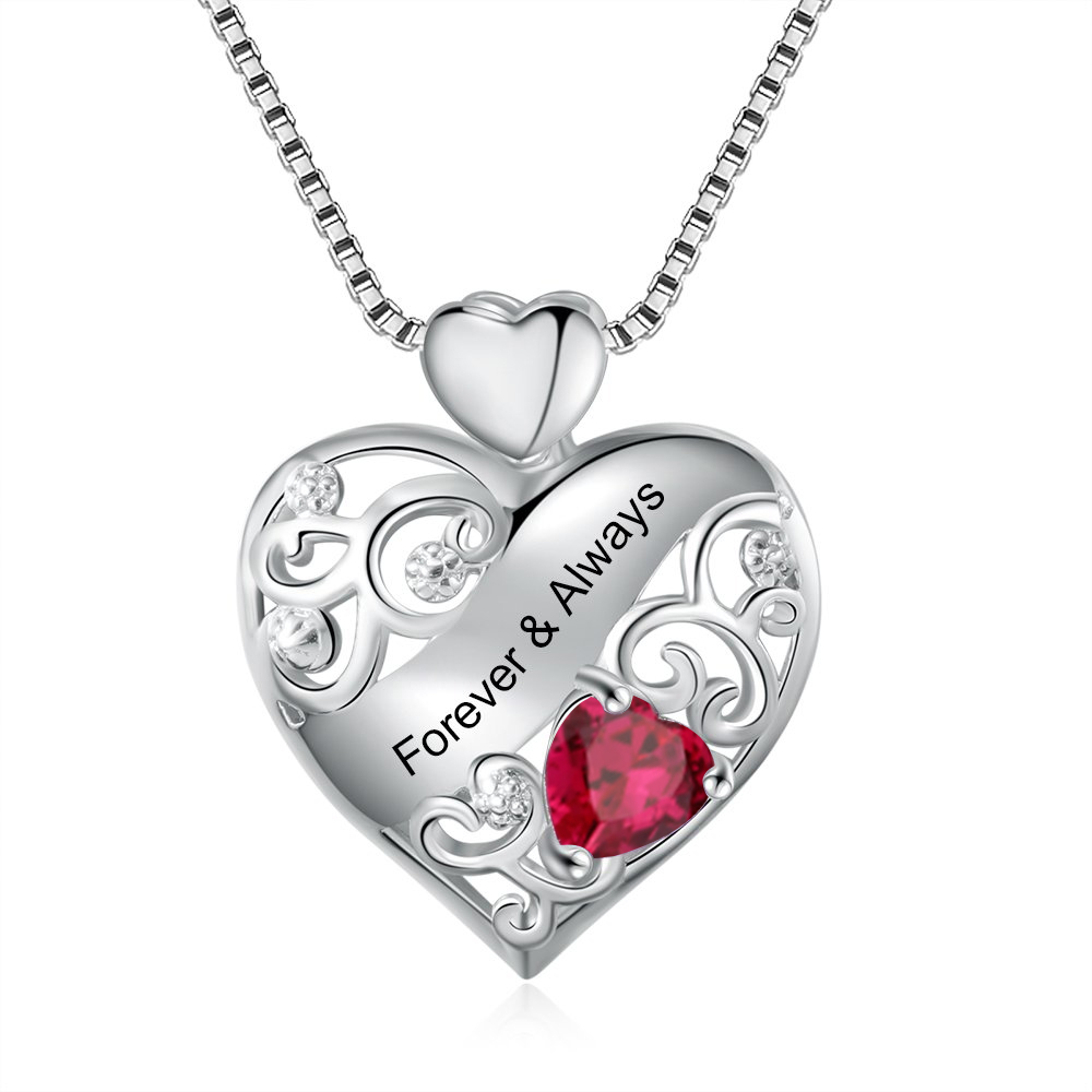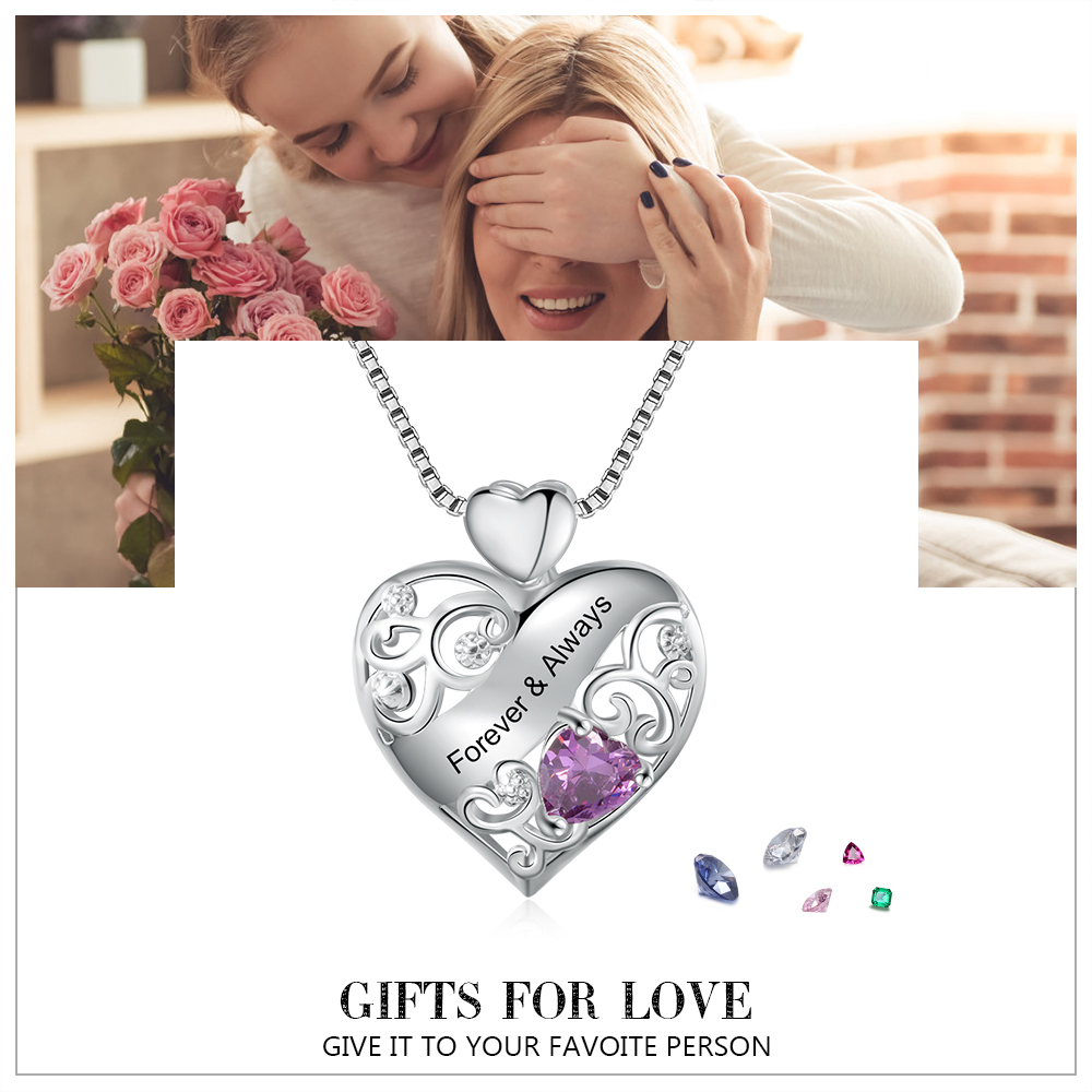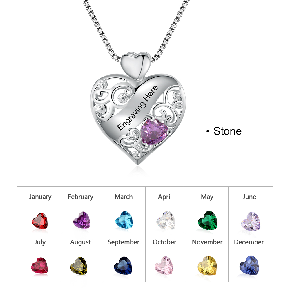 Personalized Heart Necklace With 1 birthstone Engraved Names Gift For Women