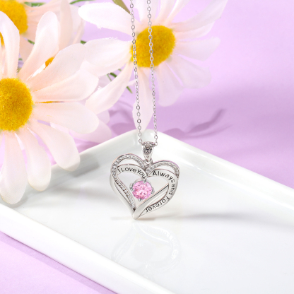 Personalized Heart Necklace with 1 Birthstone Engraved Names Gift For Women
