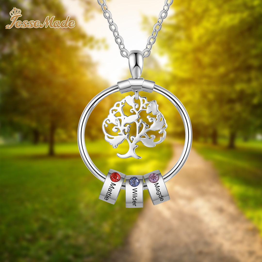 1 Name-Personalized Family Tree Necklace With 1 Birthstone Engraved Names Gift For Her