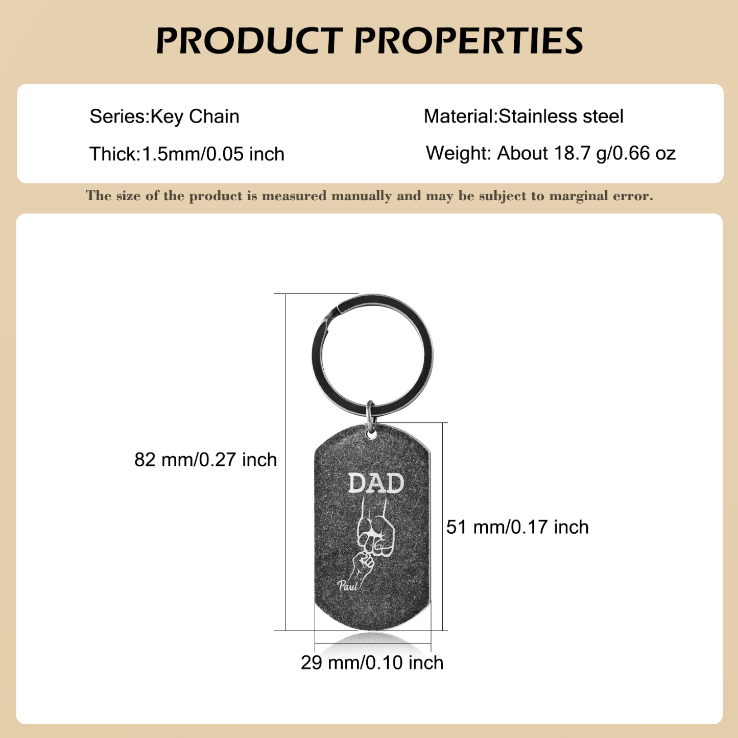 1 Kids' Names-Personalized Dad Fist Bump Keychain Custom Names And Text Gift For Dad