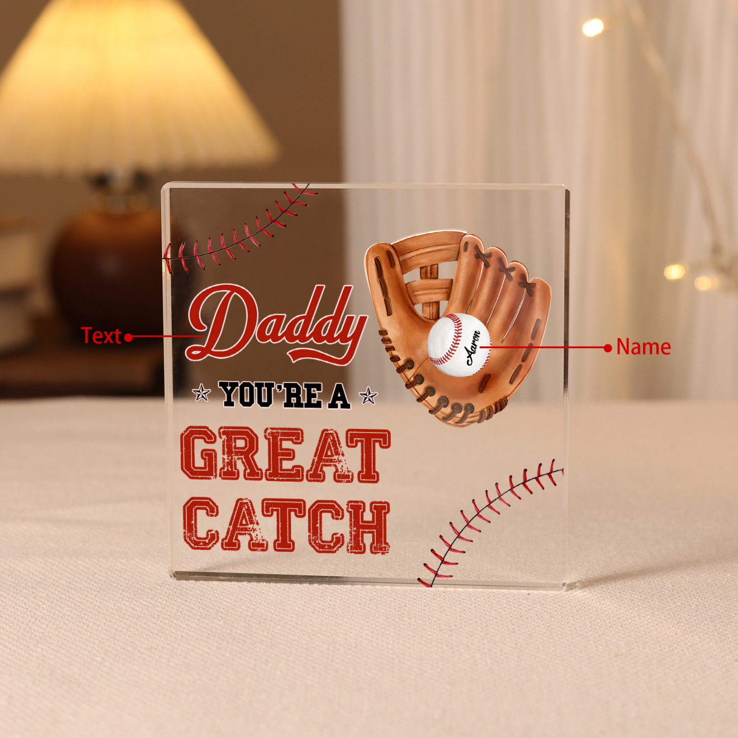 1 Name - Personalized Baseball Acrylic Keepsake Customized Name and Text Acrylic Plaque Ornament Father's Day Gift for Dad