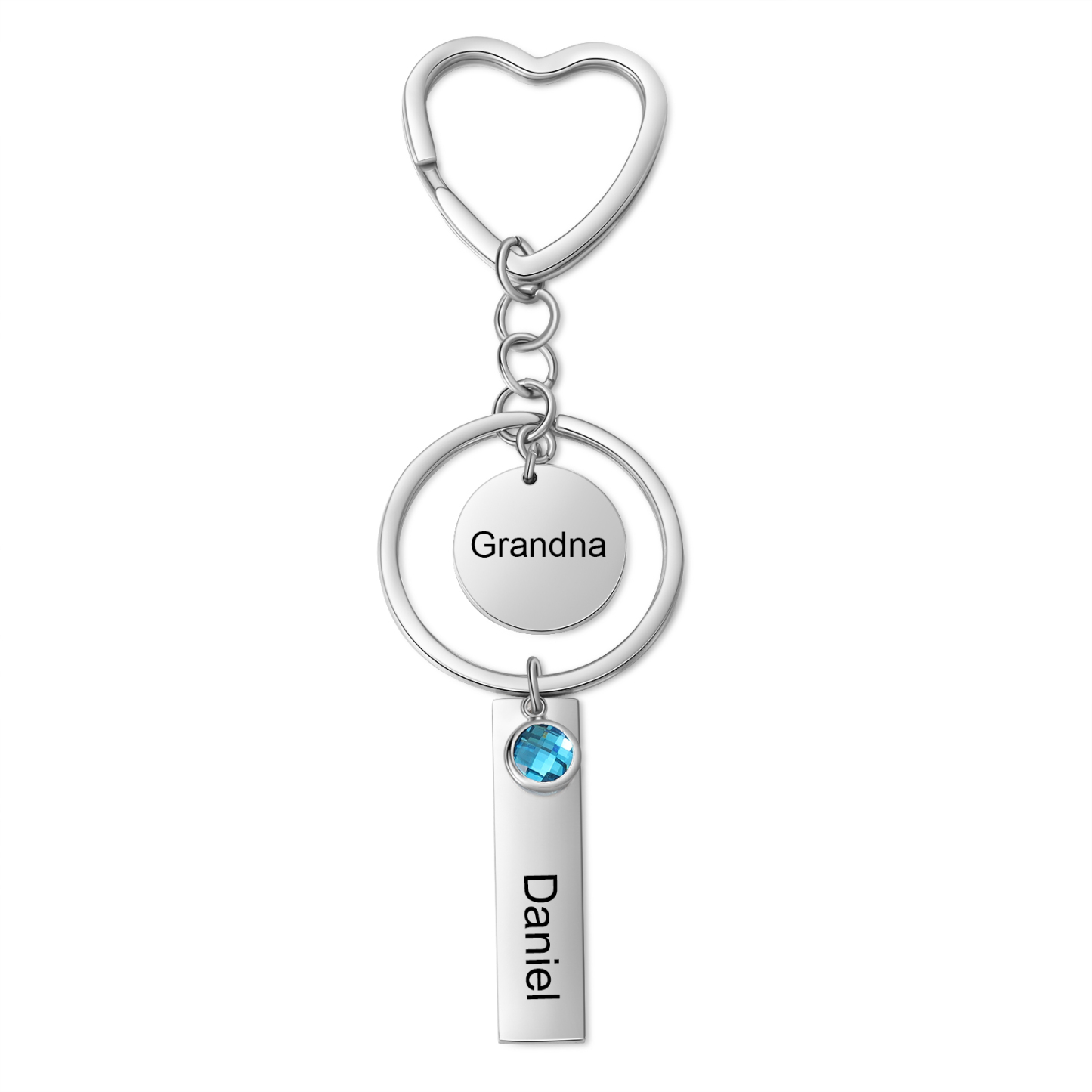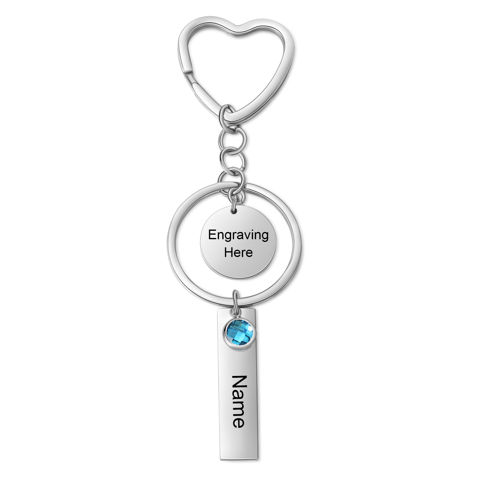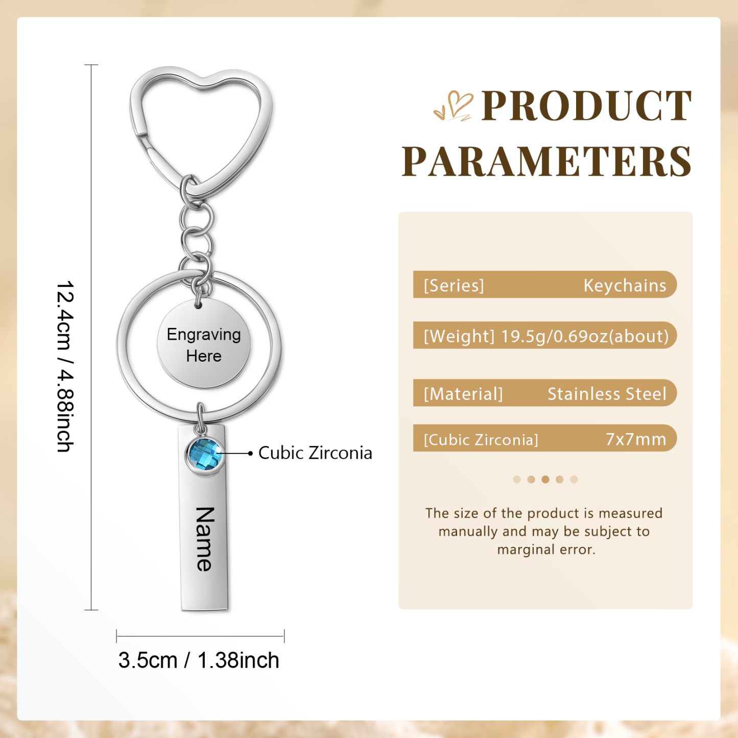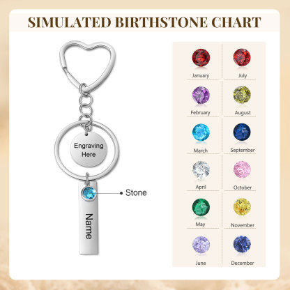 1 Name - Personalized Birthstone Love Pendant Design Keychain Hook Engraving Special Gift for Mom