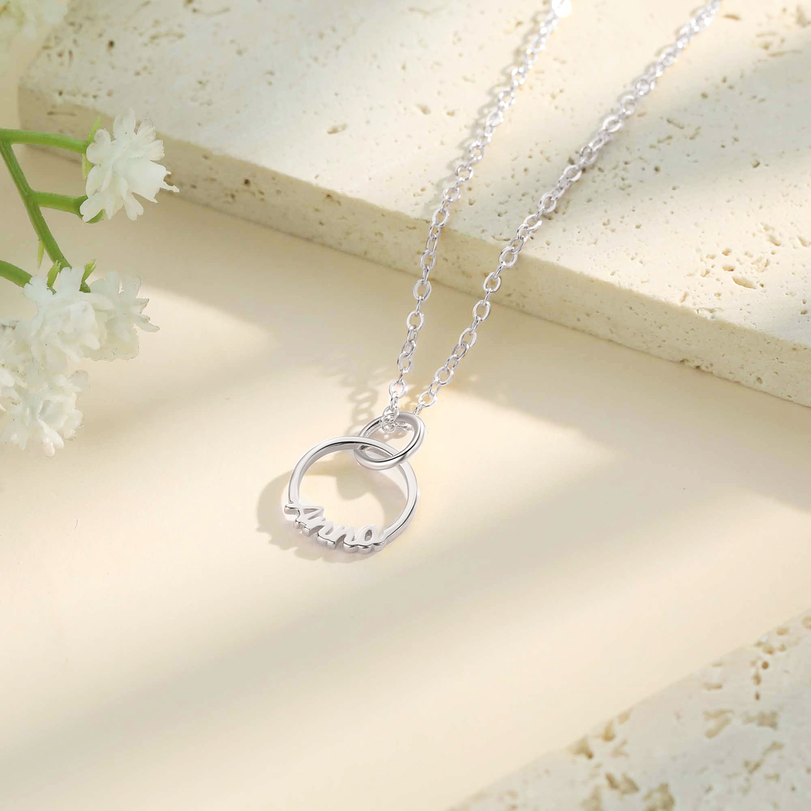 1 Name-Personalized Circle Necklace With 1 Name Pendant Engraved Names Gift For Woman