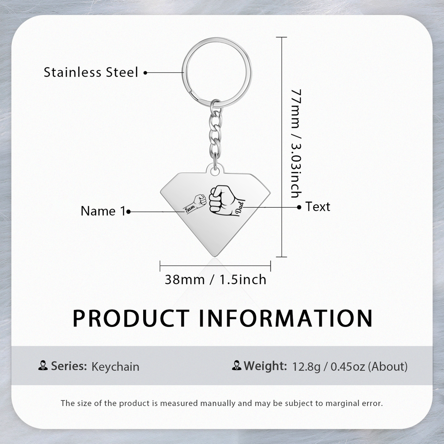 1 Name - Personalized Fist Bump Keychain Engraved Kids Names and text Keychain Gifts for Dad/Grandad