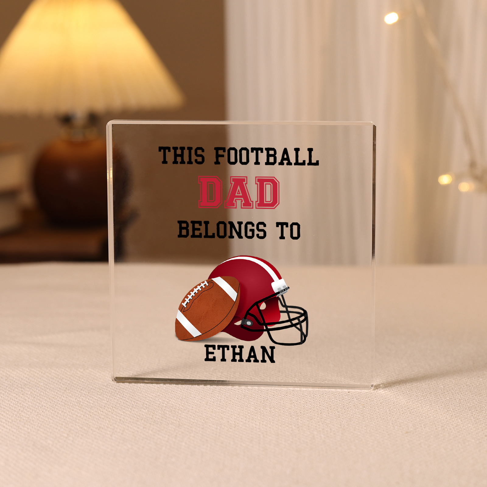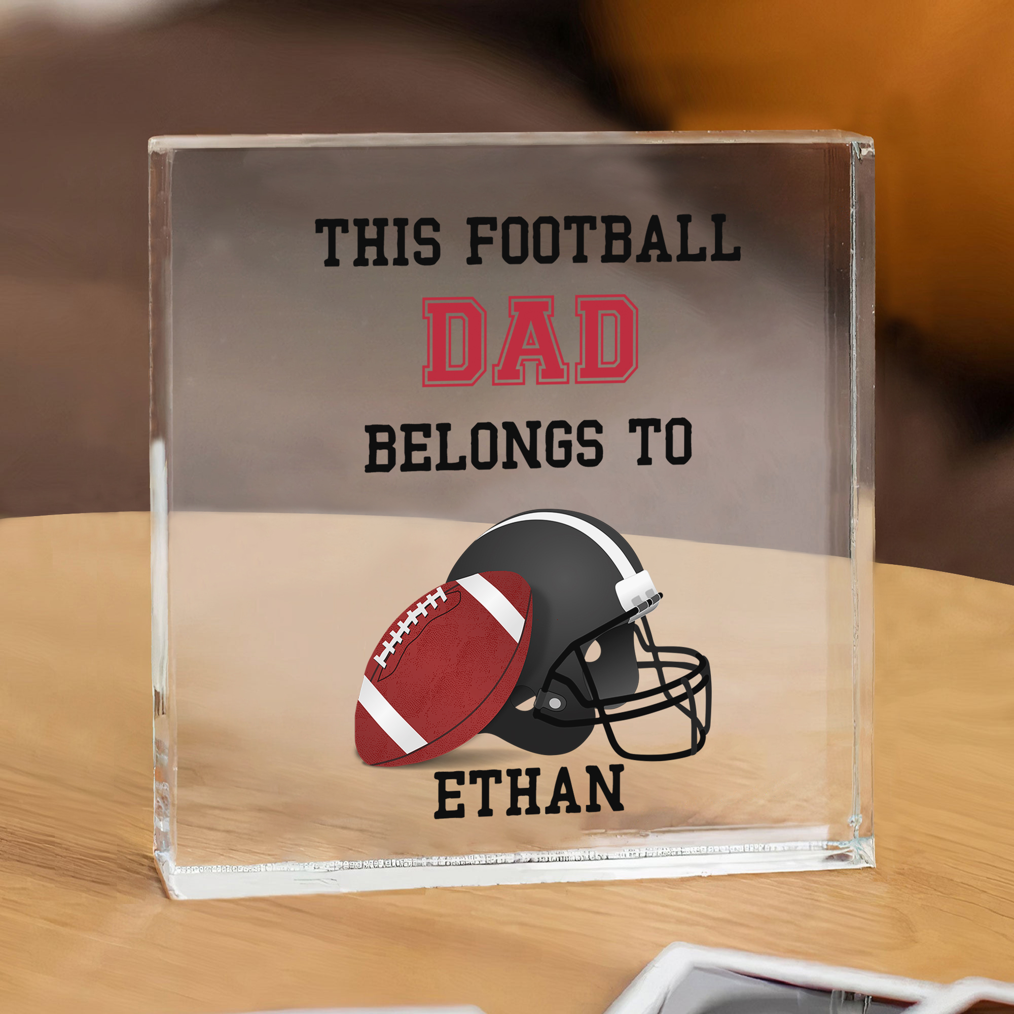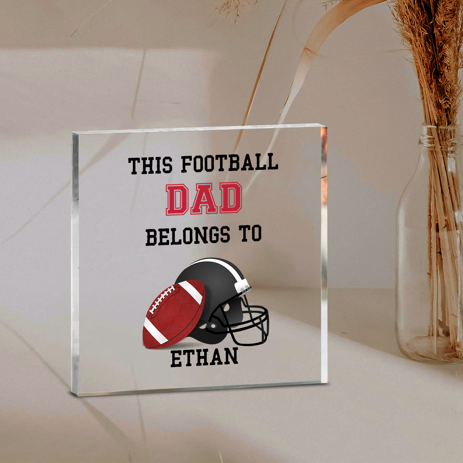 1 Name -Personalized Football Acrylic Keepsake Customized Name Acrylic Plaque Ornament Father's Day Gift for Dad