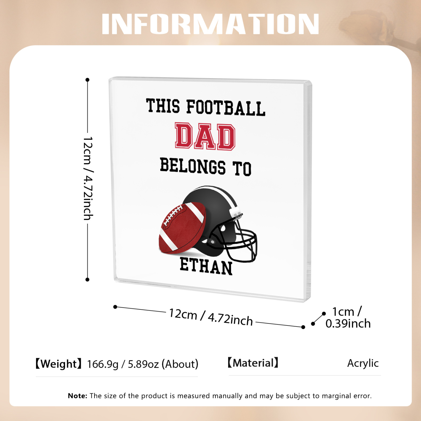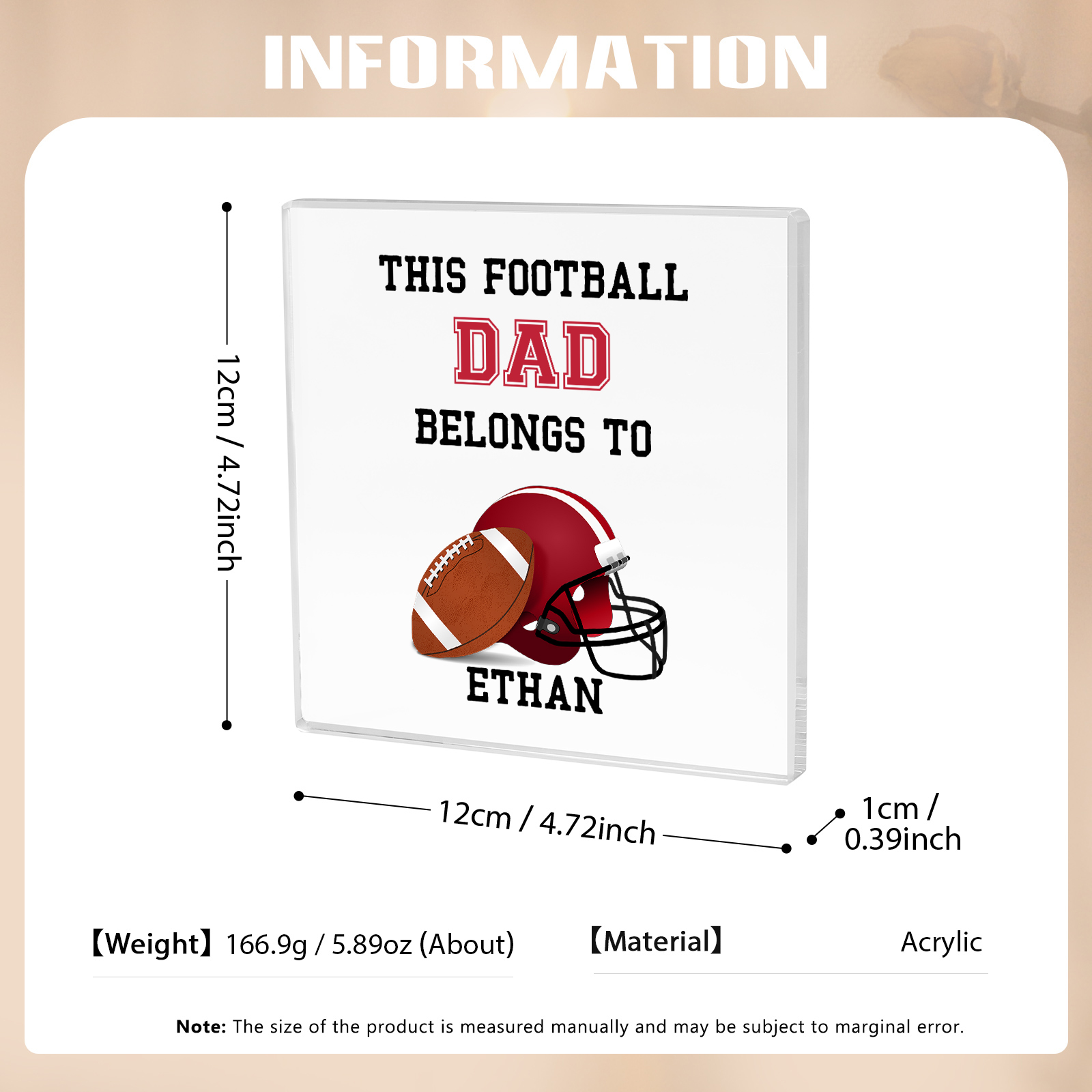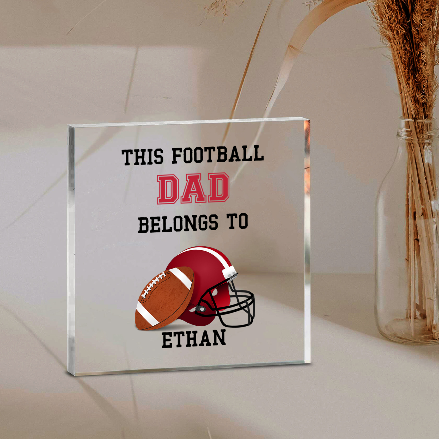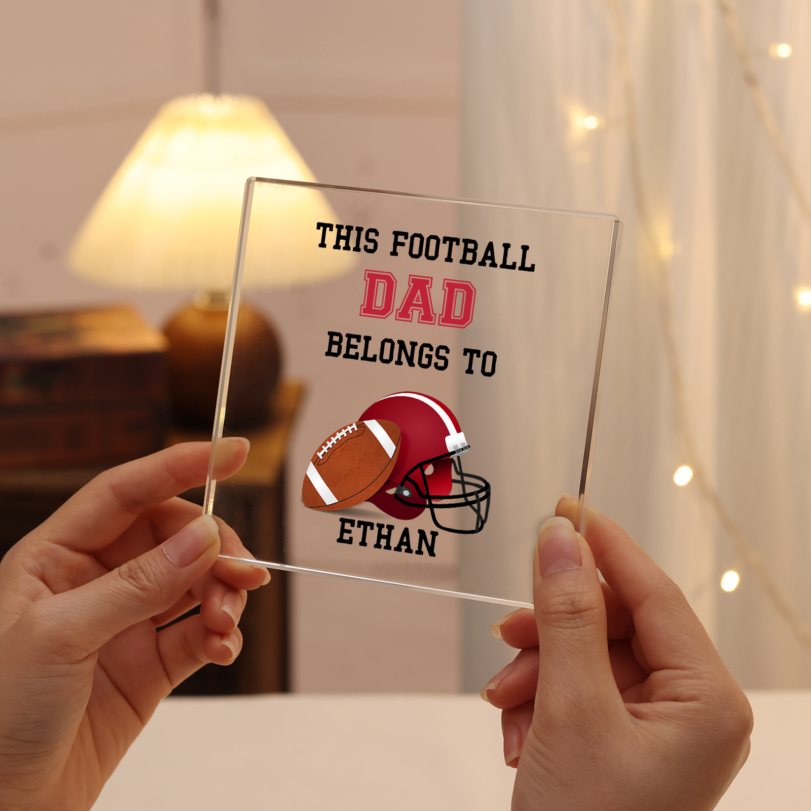 1 Name -Personalized Football Acrylic Keepsake Customized Name Acrylic Plaque Ornament Father's Day Gift for Dad