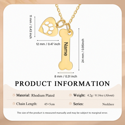 1 Name - Personalized Heart and Bones Charm Pendant Necklace, Custom Name Gift for Her