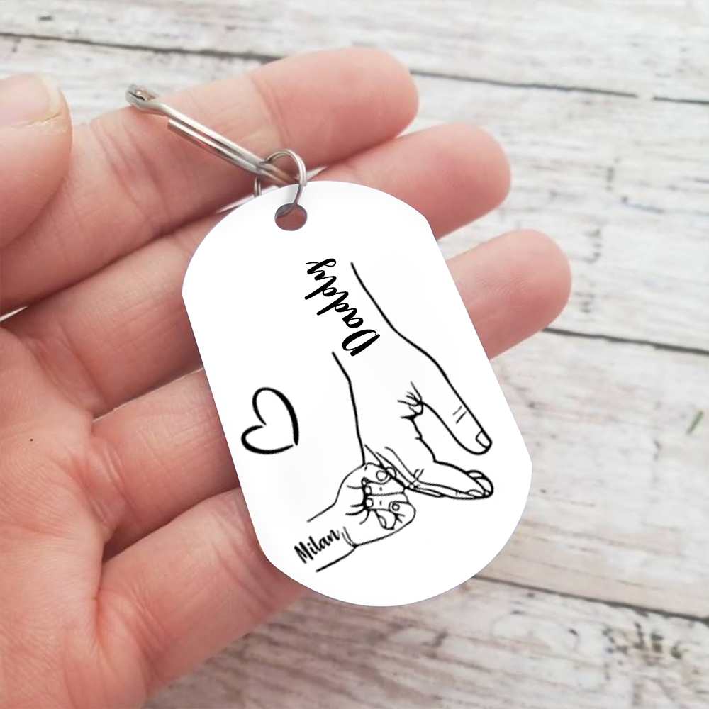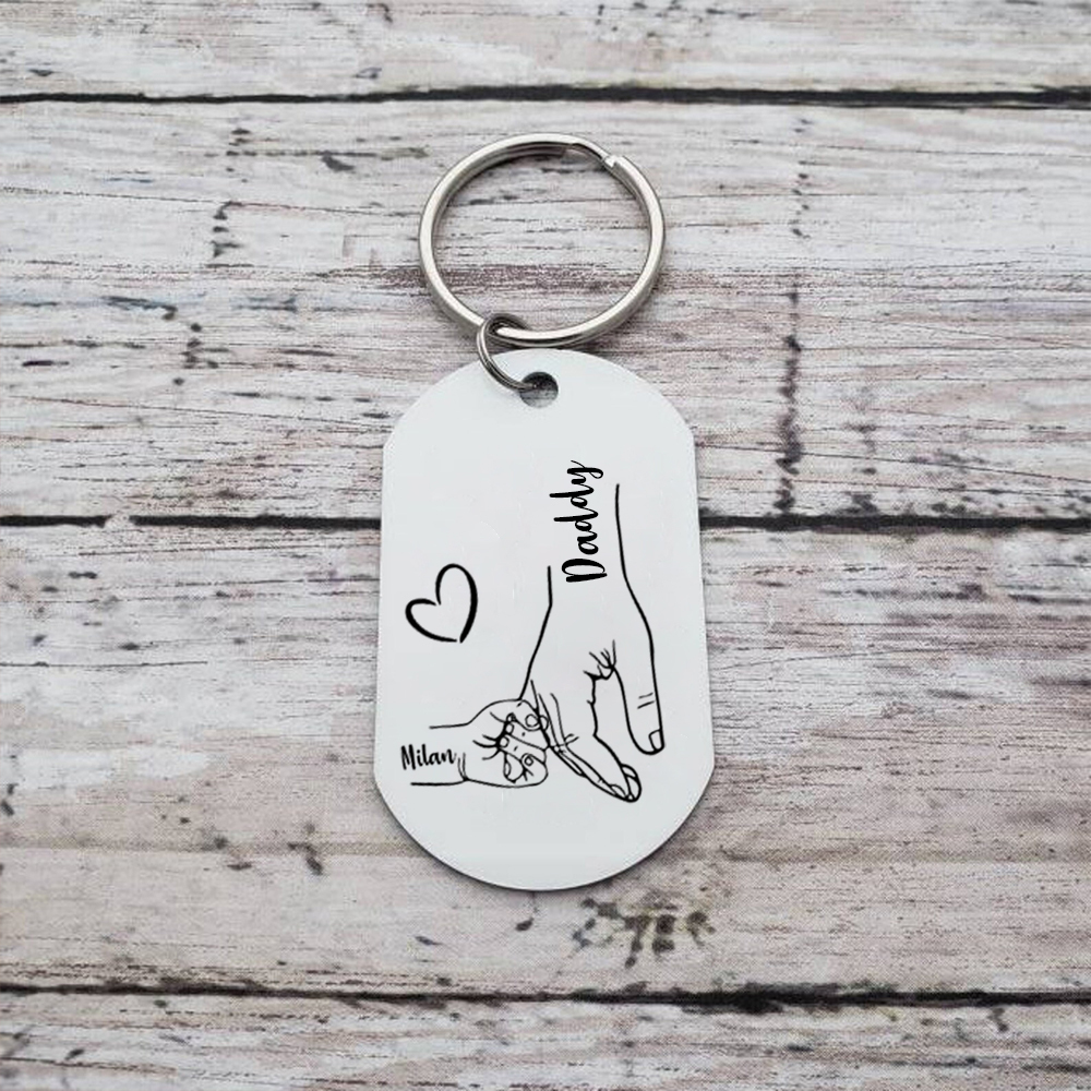 1 Name - Personalized Holding Hands Keychain with name and text Gift for Dad