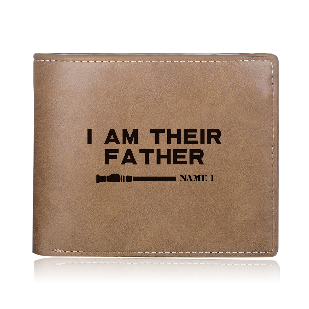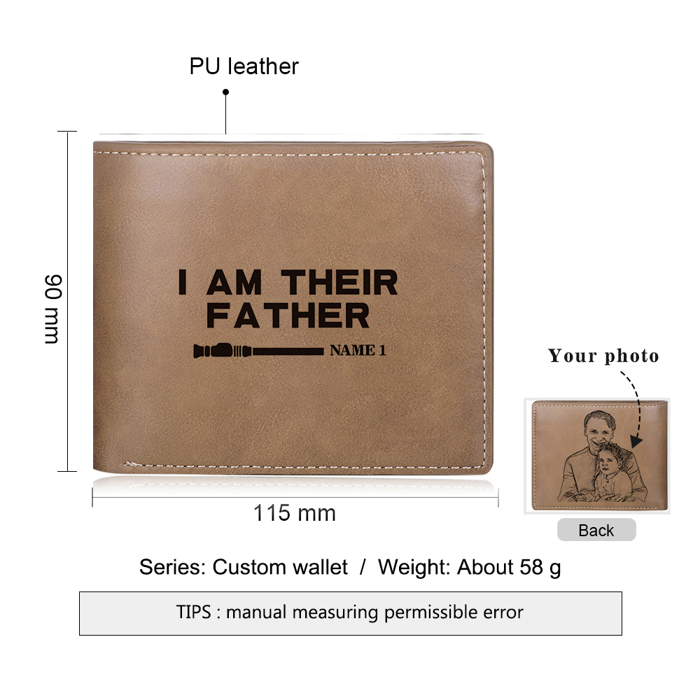 1 Name-Personalized Leather Mens Horizontal Wallet Engraved 1 Name And Photo I Am Their Father Folding Wallet Father's Day Gifts For Dad