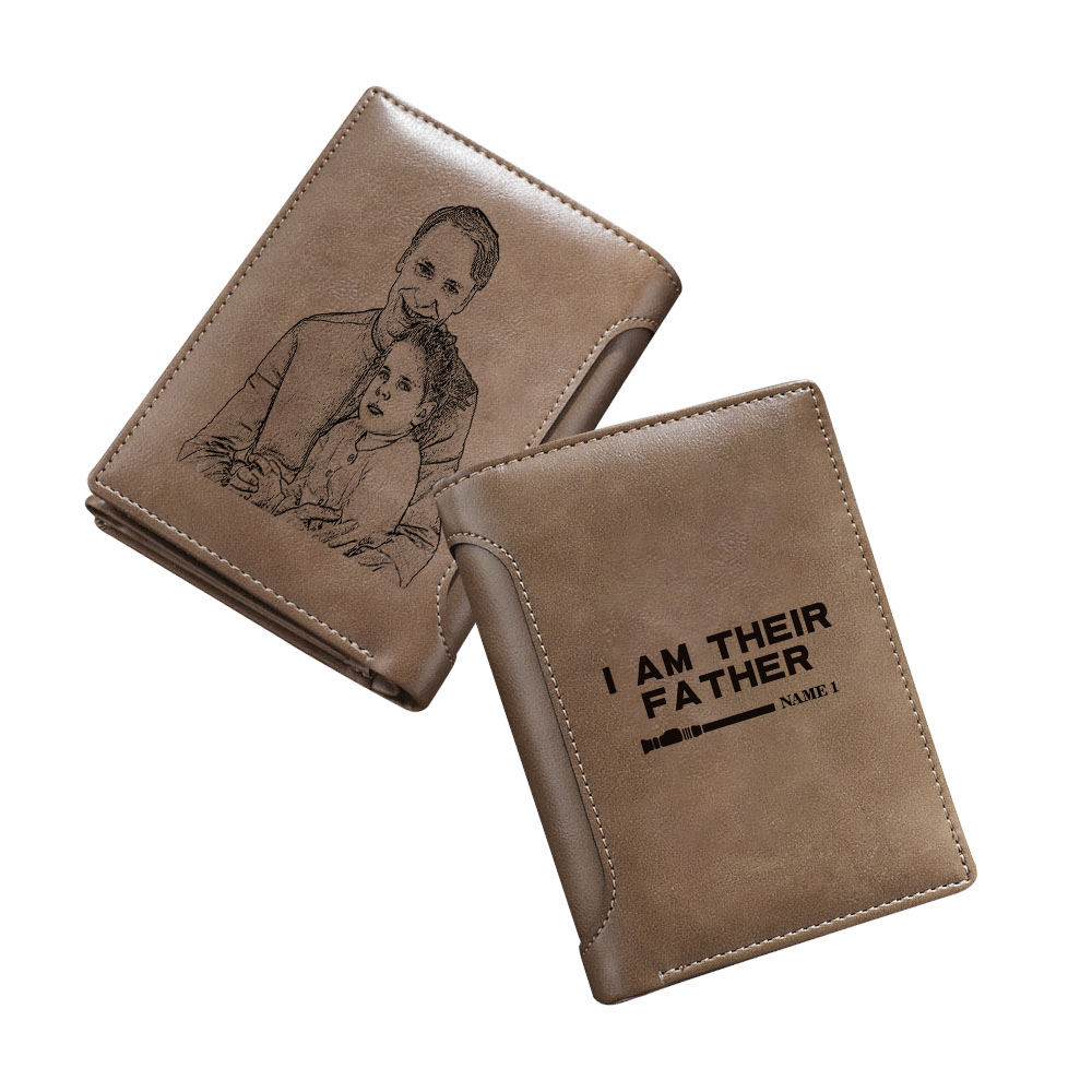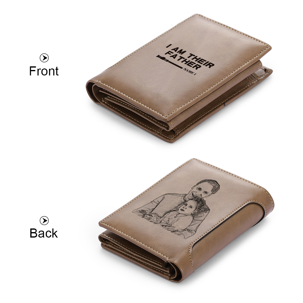 1 Name-Personalized Leather Mens Vertical Wallet Engraved 1 Name And Photo I Am Their Father Folding Wallet Father's Day Gifts For Dad