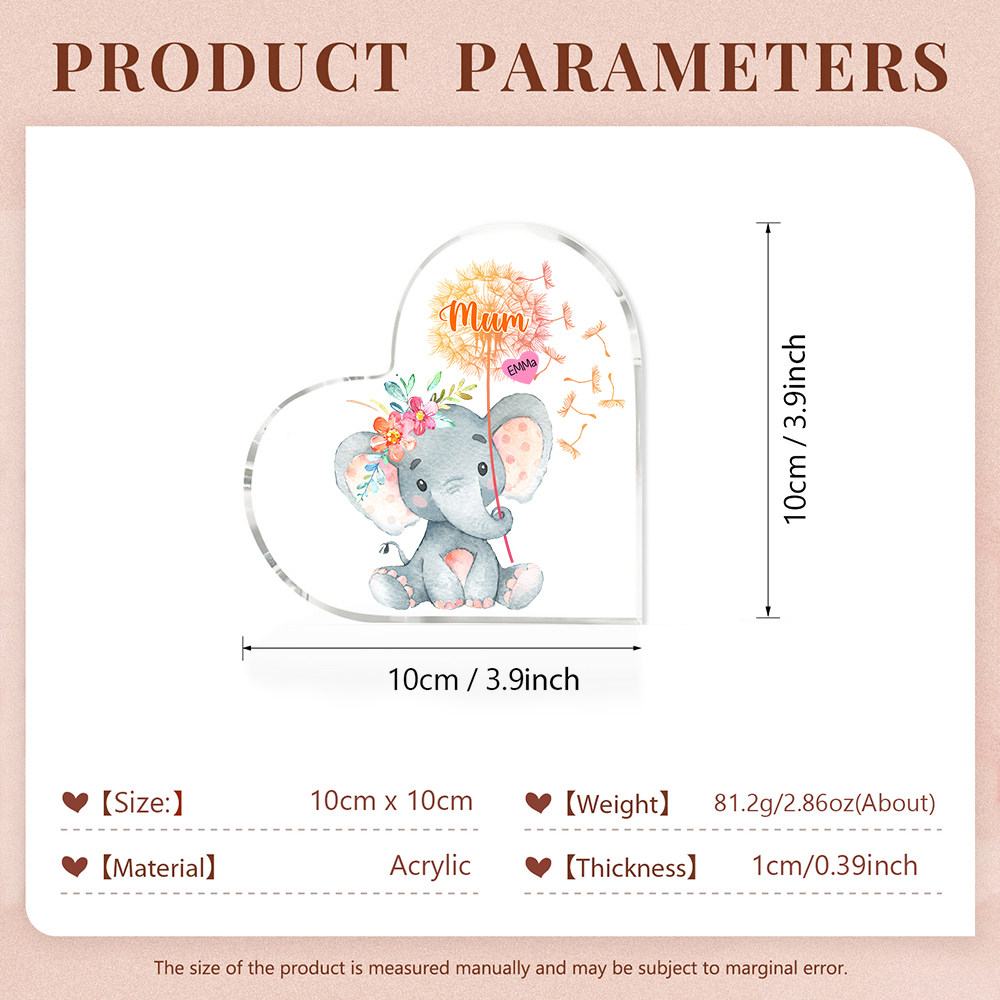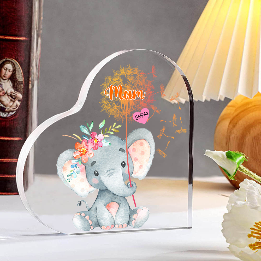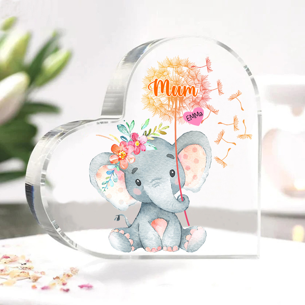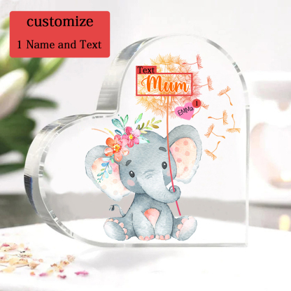 1 Name-Personalized Mum Acrylic Heart Keepsake Custom Text Love Elephant Ornaments Gifts Set With Gift Box for Grandma/Mother