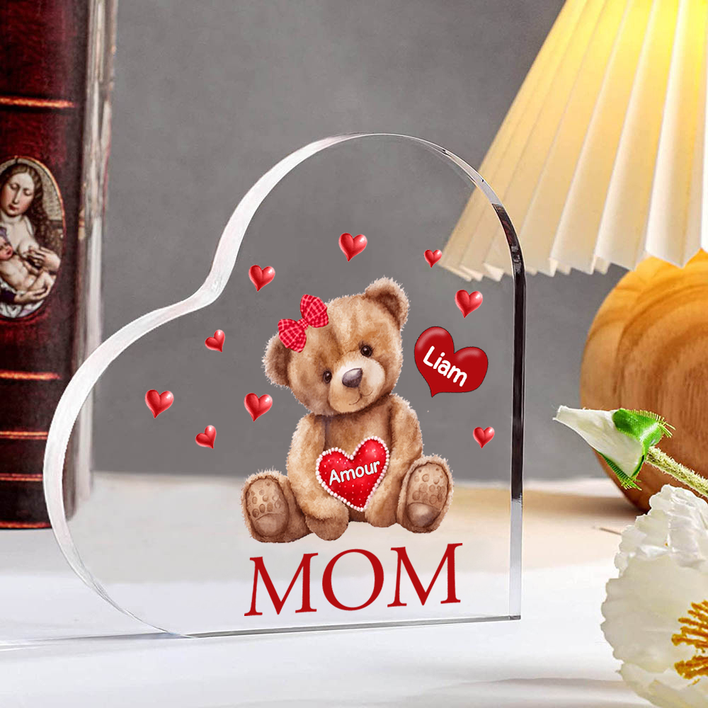 1 Name-Personalized Mom Acrylic Heart Keepsake Custom Text Love Teddy Bear Ornaments Gifts Set With Gift Box for Grandma/Mother