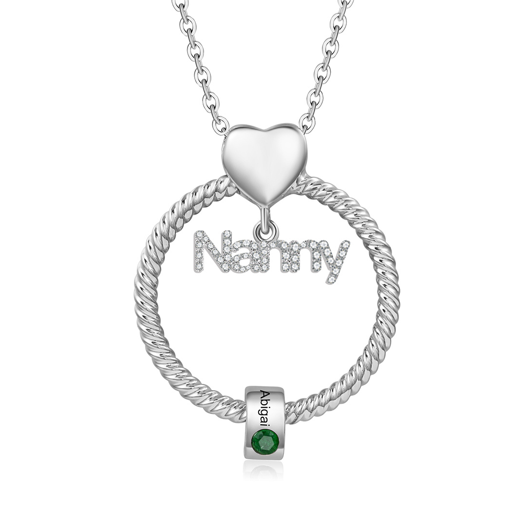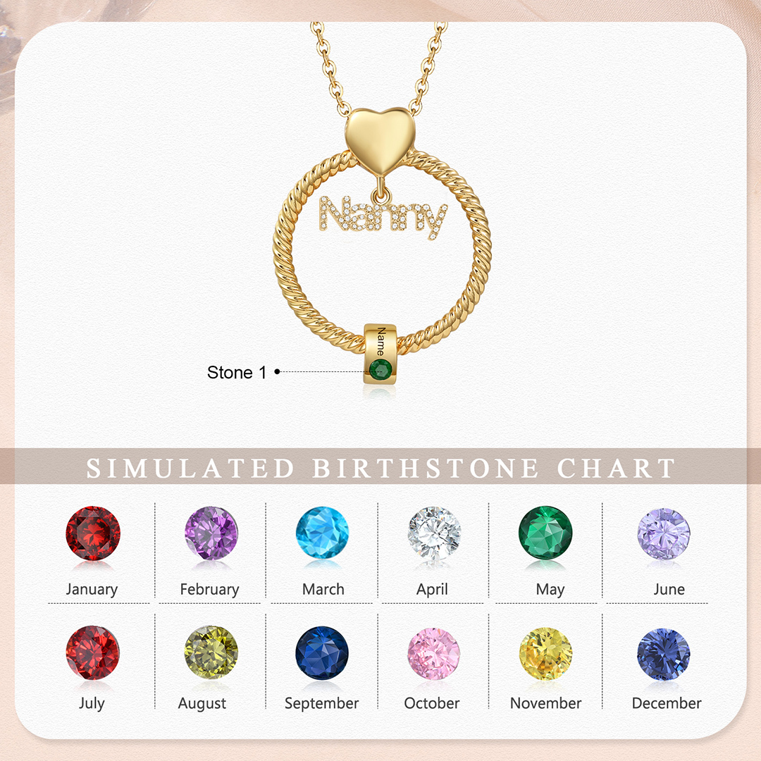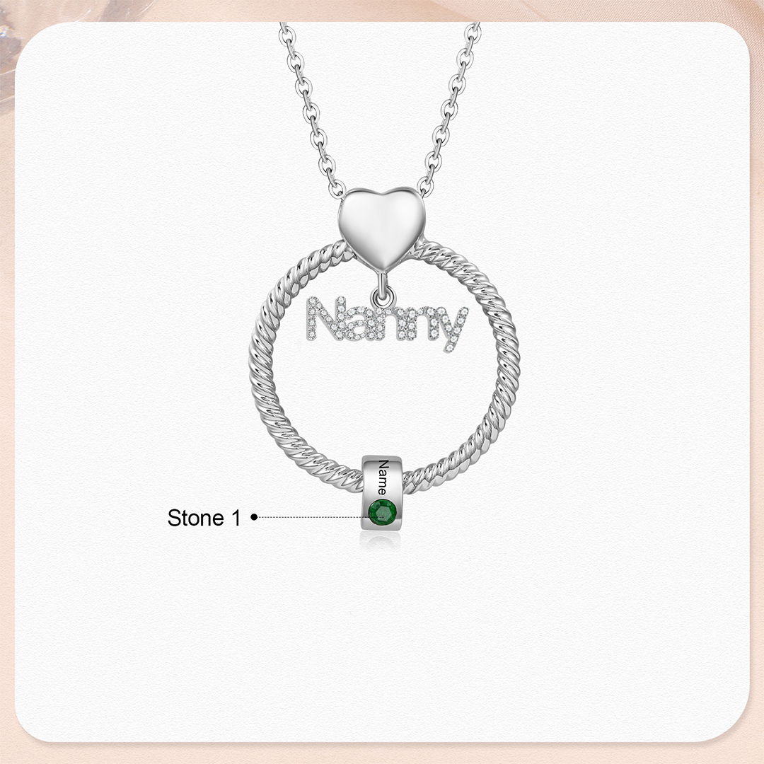 1 Name-Personalized Nanny Circle Necklace With 1 Birthstone Pendant Engraved Names Gift For Nanny