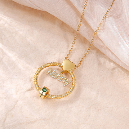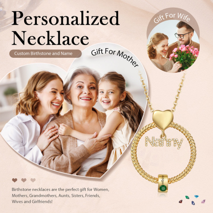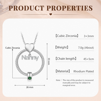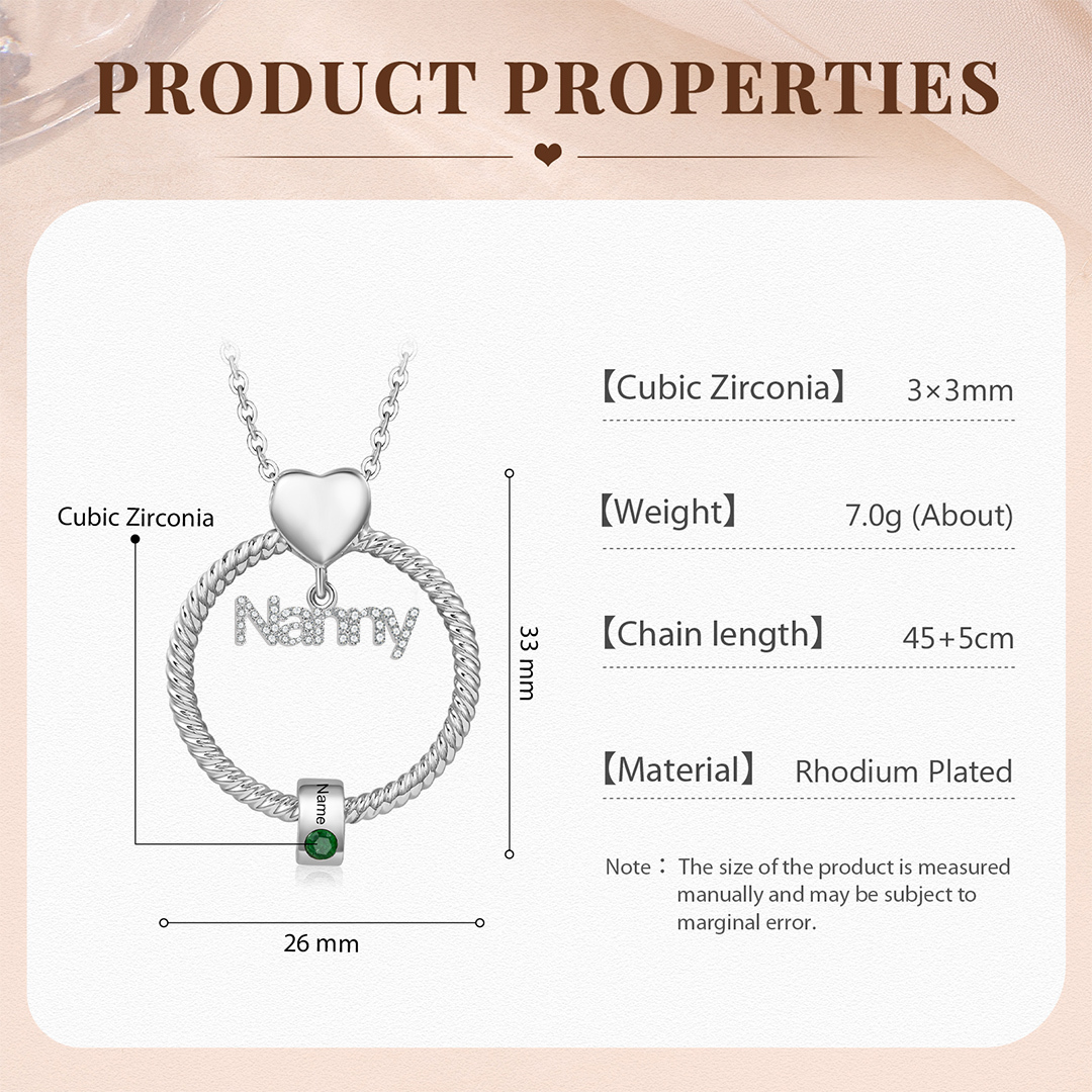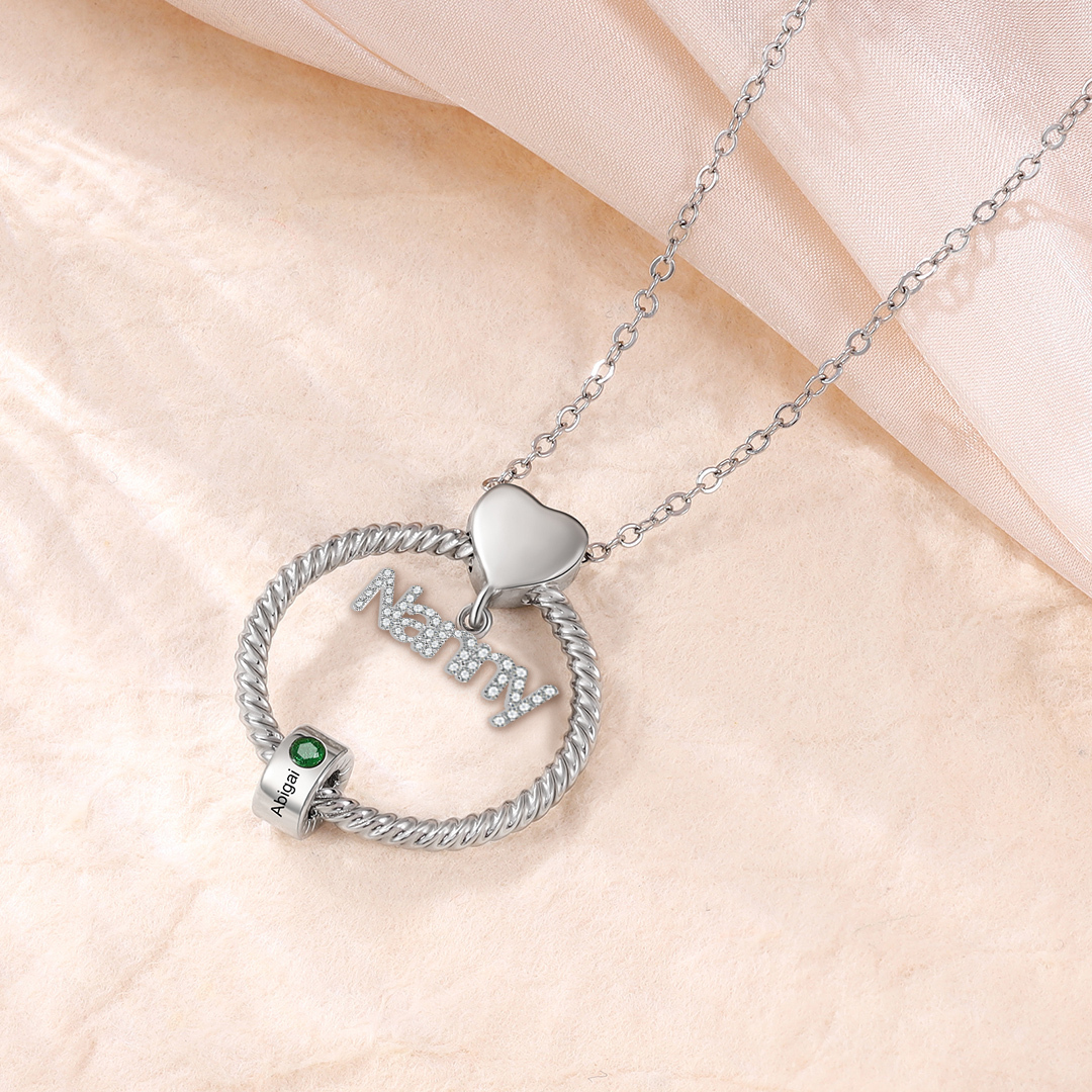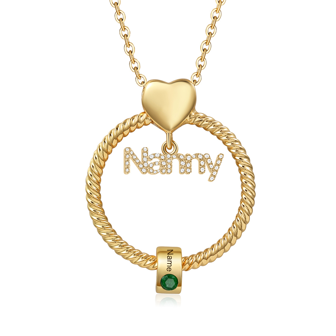 1 Name-Personalized Nanny Circle Necklace With 1 Birthstone Pendant Engraved Names Gift For Nanny