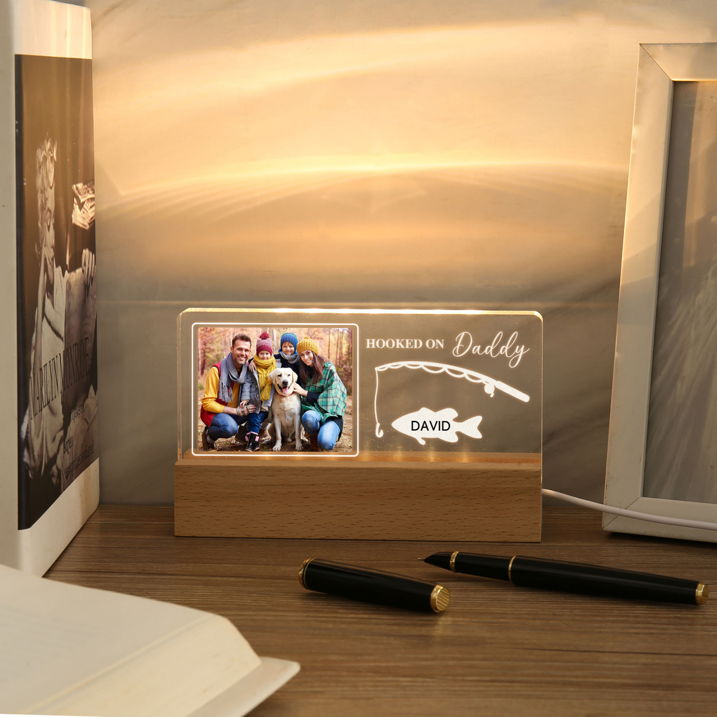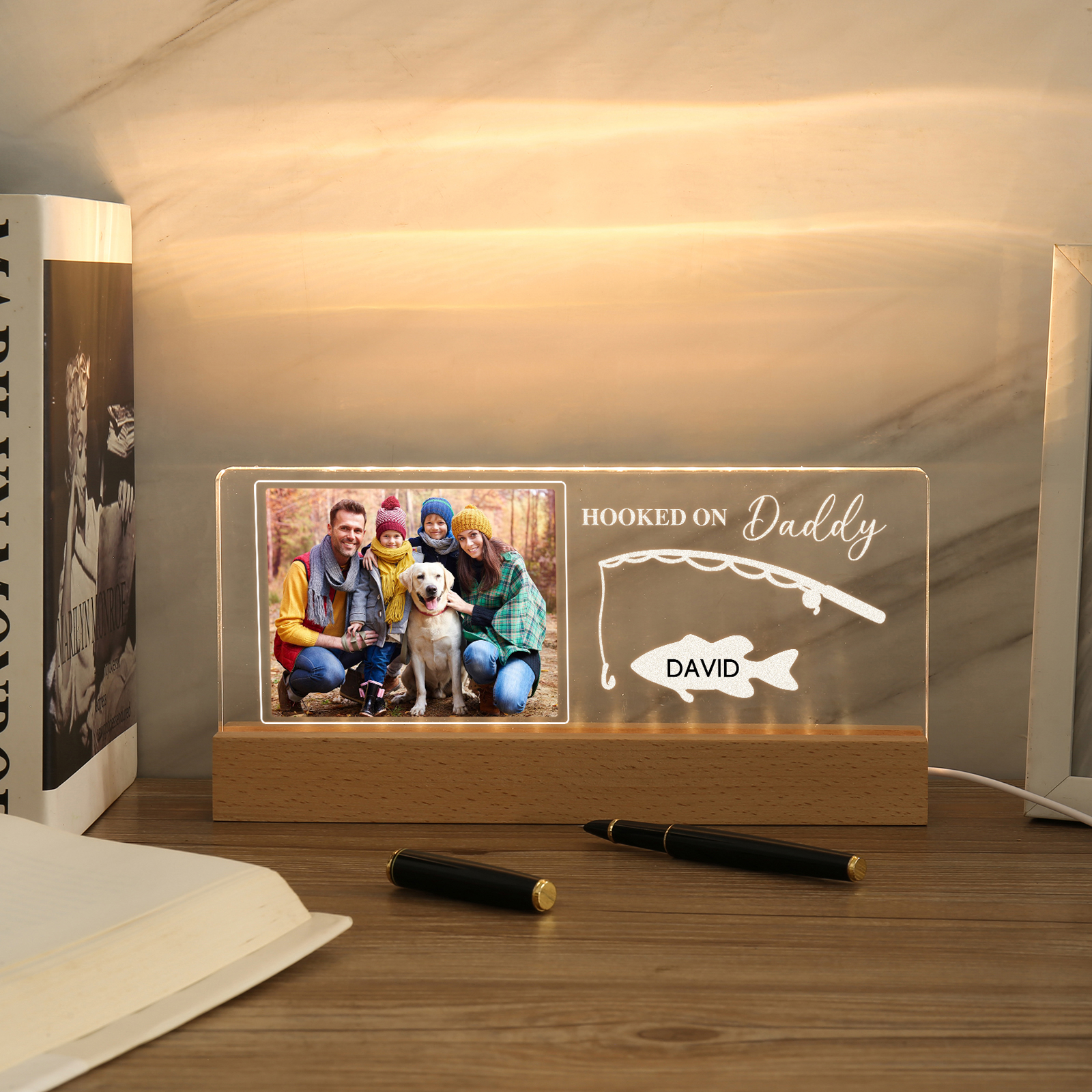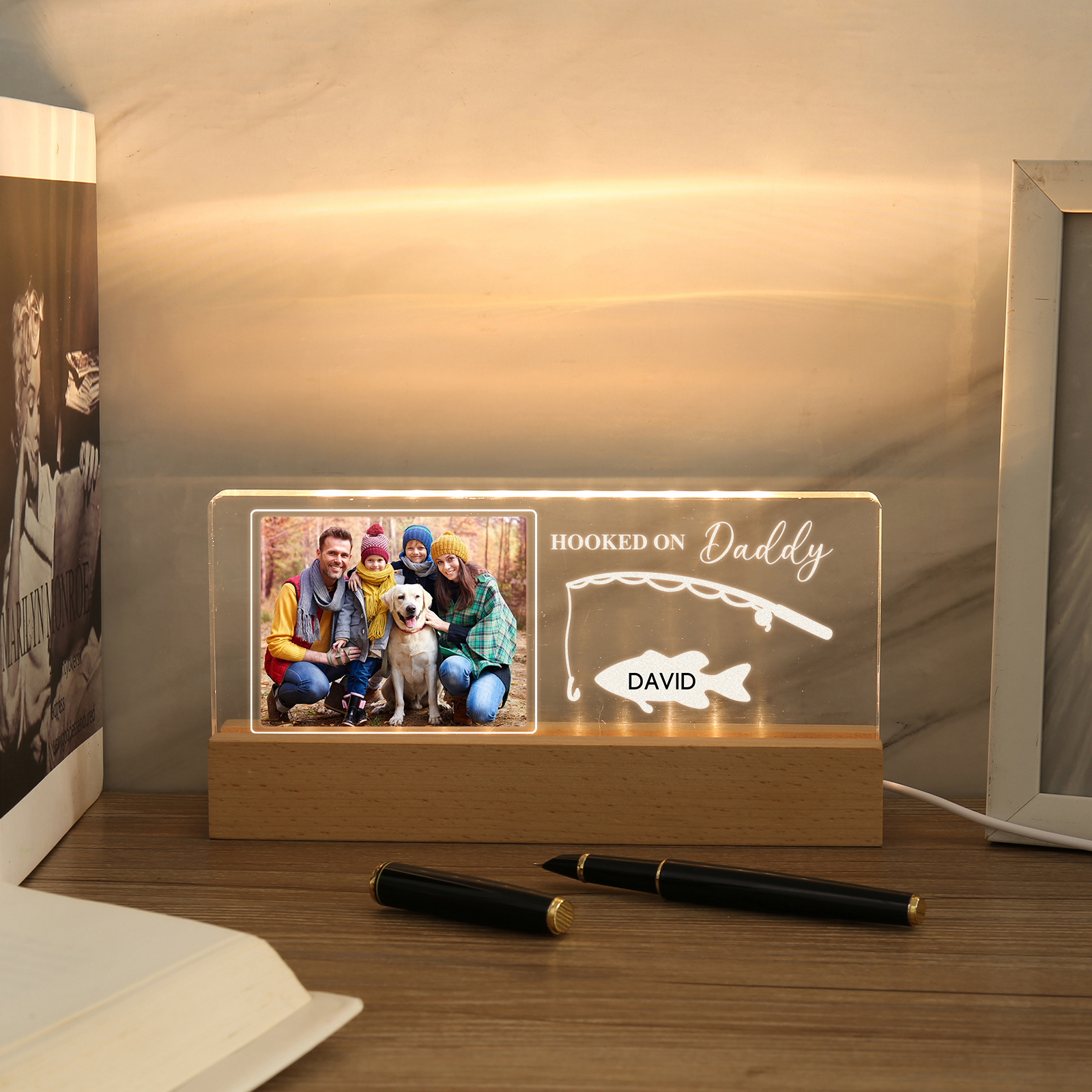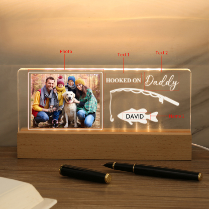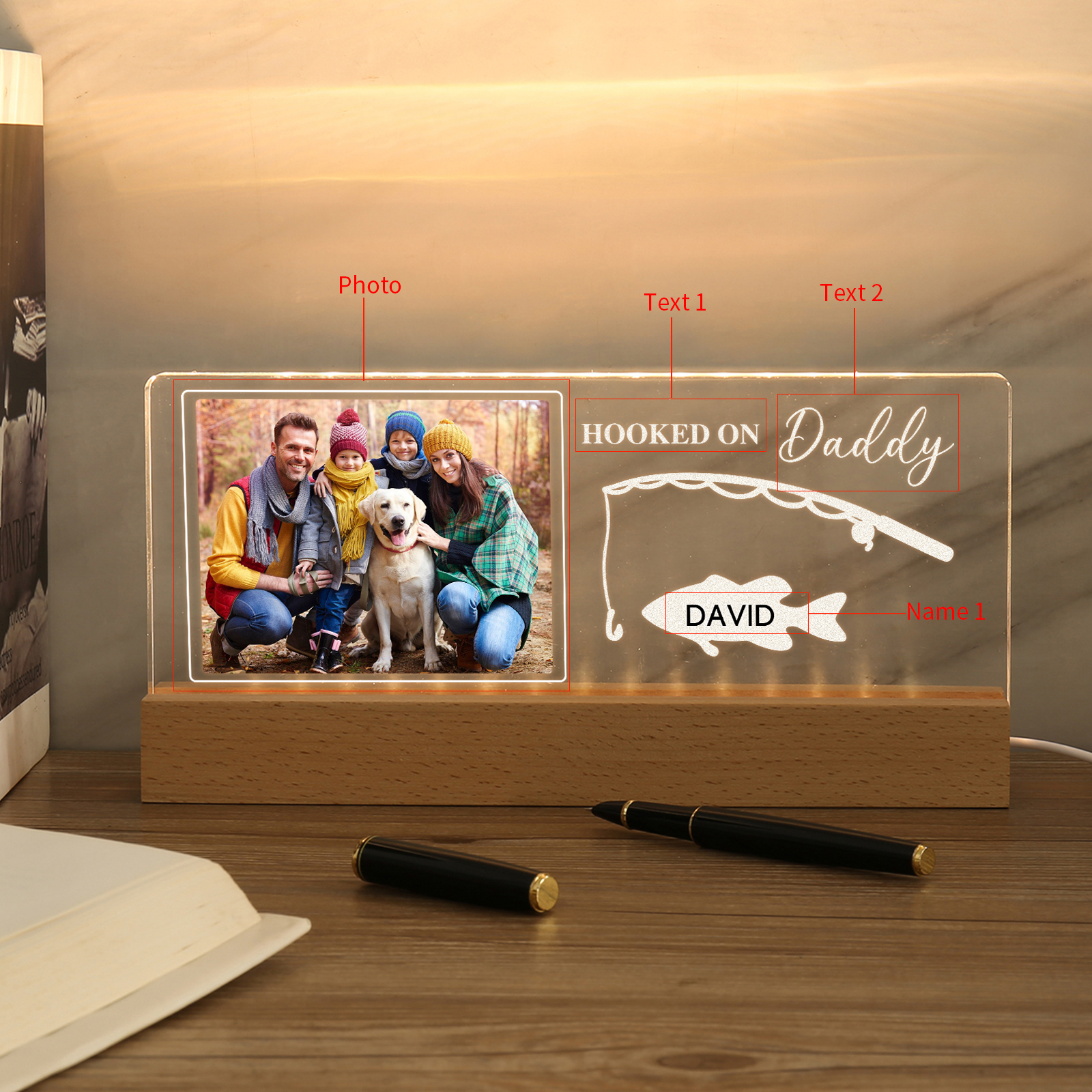 1 Name - Personalized Photo Fishing Pattern Desk Lamp Father's Day Gift For Dad