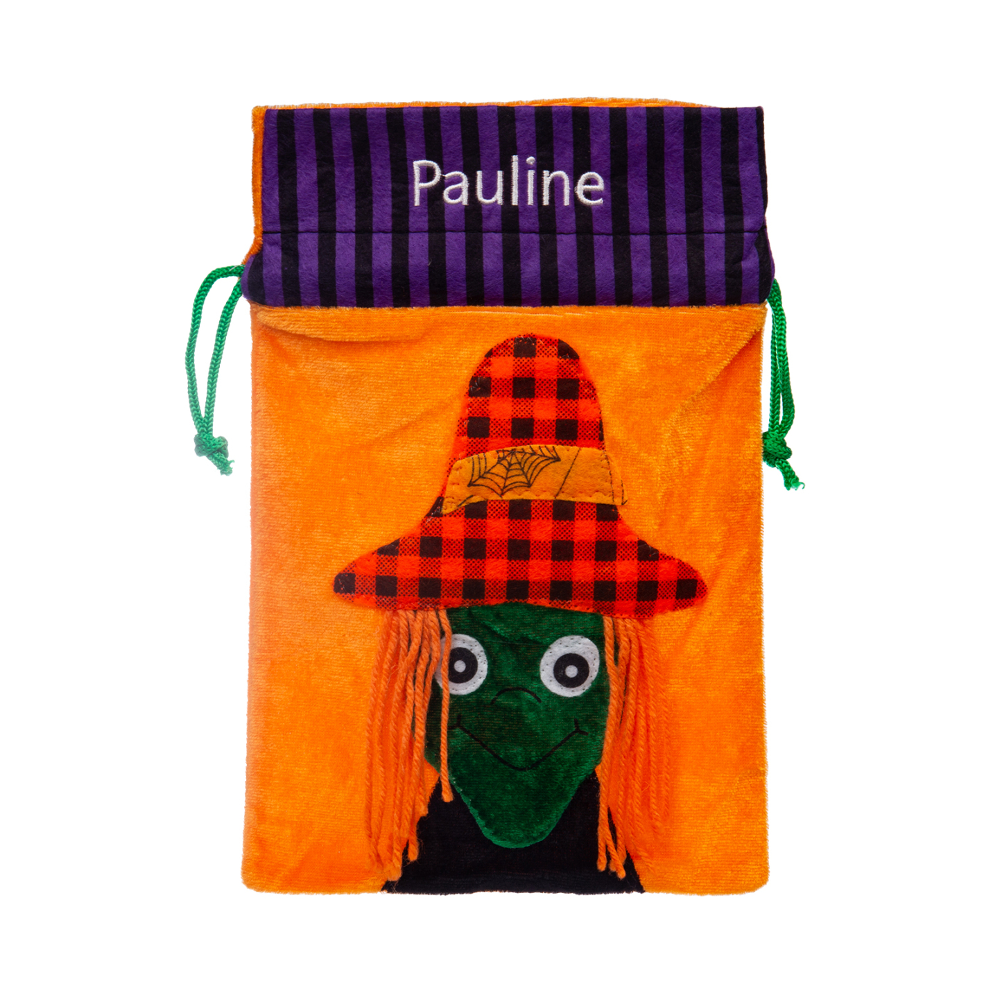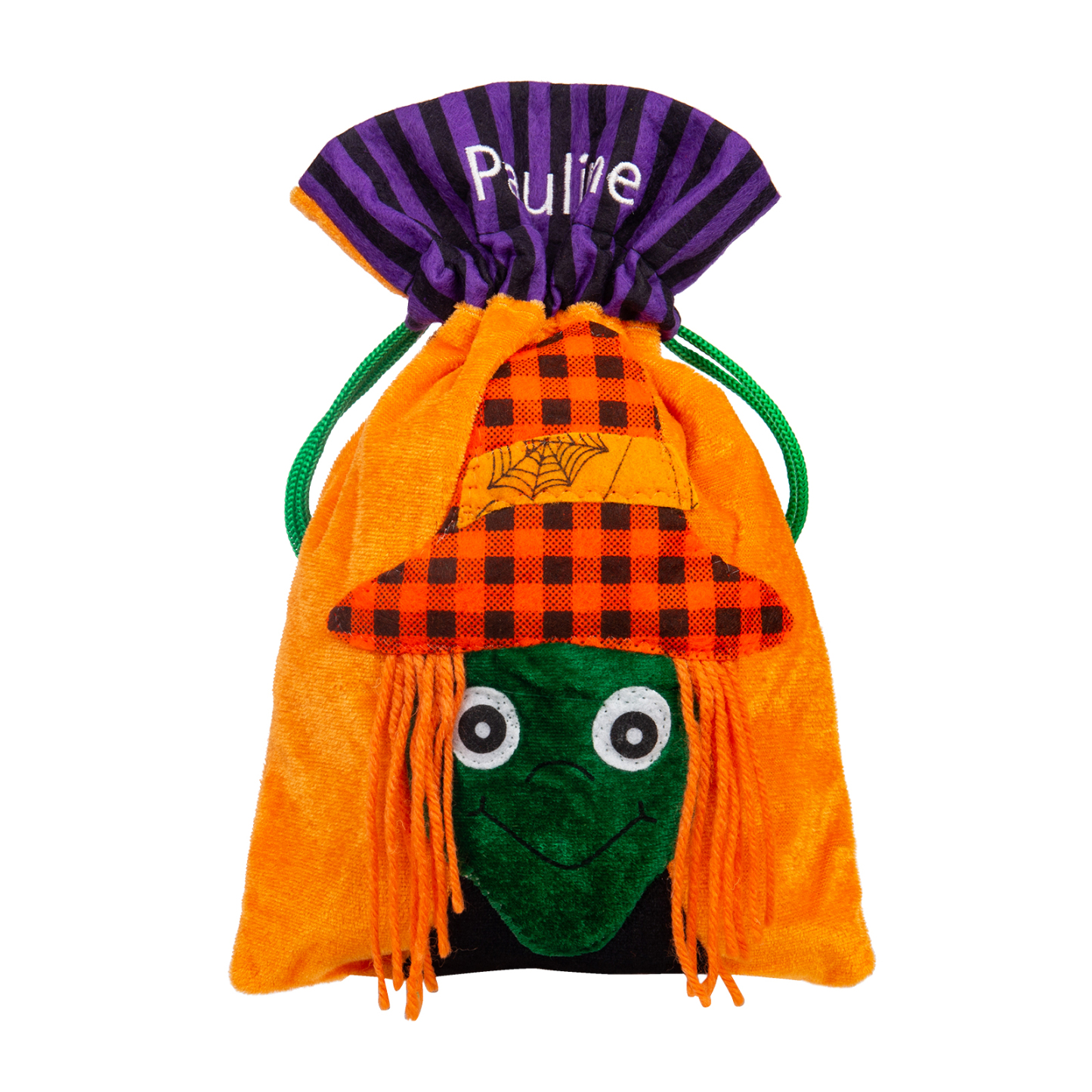1 Name-Personalized Witch Halloween Tote Bags, Custom Kids Halloween Trick or Treat Candy Bags with Witch