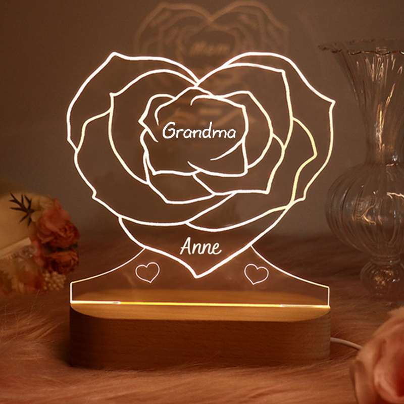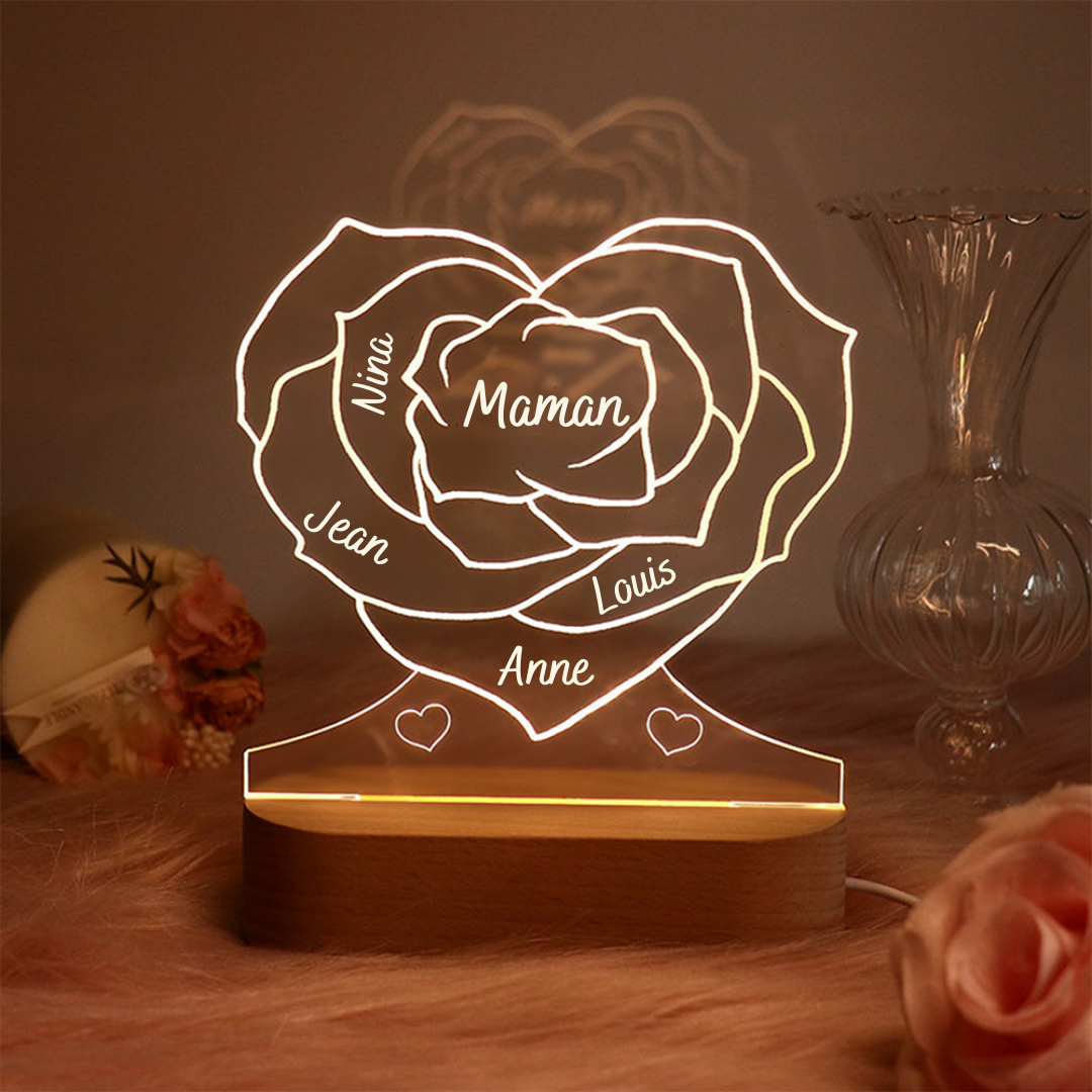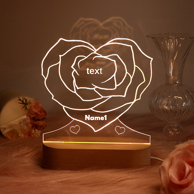 1 Names-Personalized Family Flower Acrylic Night Light, Custom Name and Text Lamp Christmas Gifts