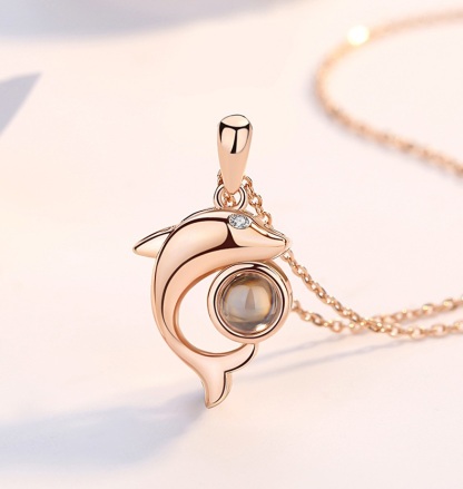 100 Languages Projection Necklace Engraved " I LOVE YOU" Dolphin Necklace Valentines Day Gifts For Her