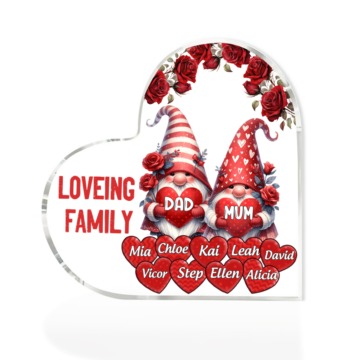 11 Names-Personalized Family Dwarf Acrylic Ornament-Custom Text Acrylic Family Heart Keepsake Desktop Ornament For Family