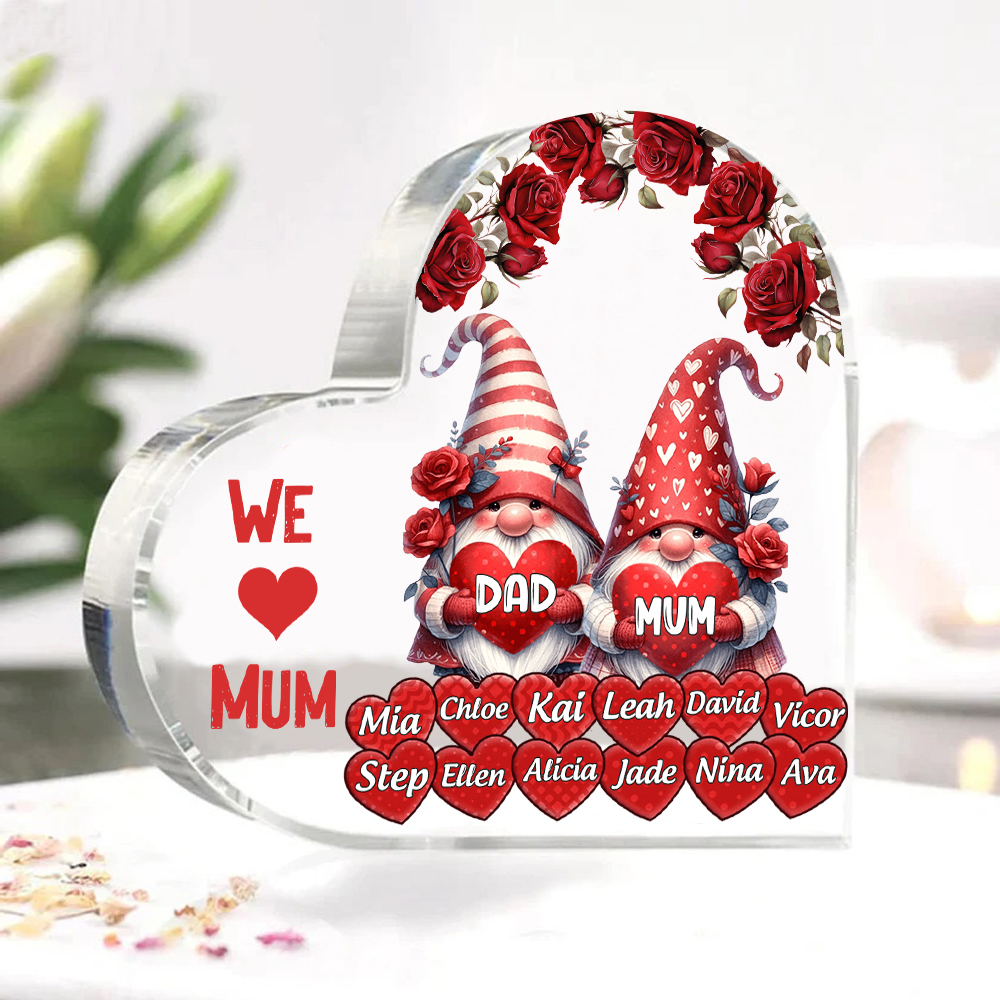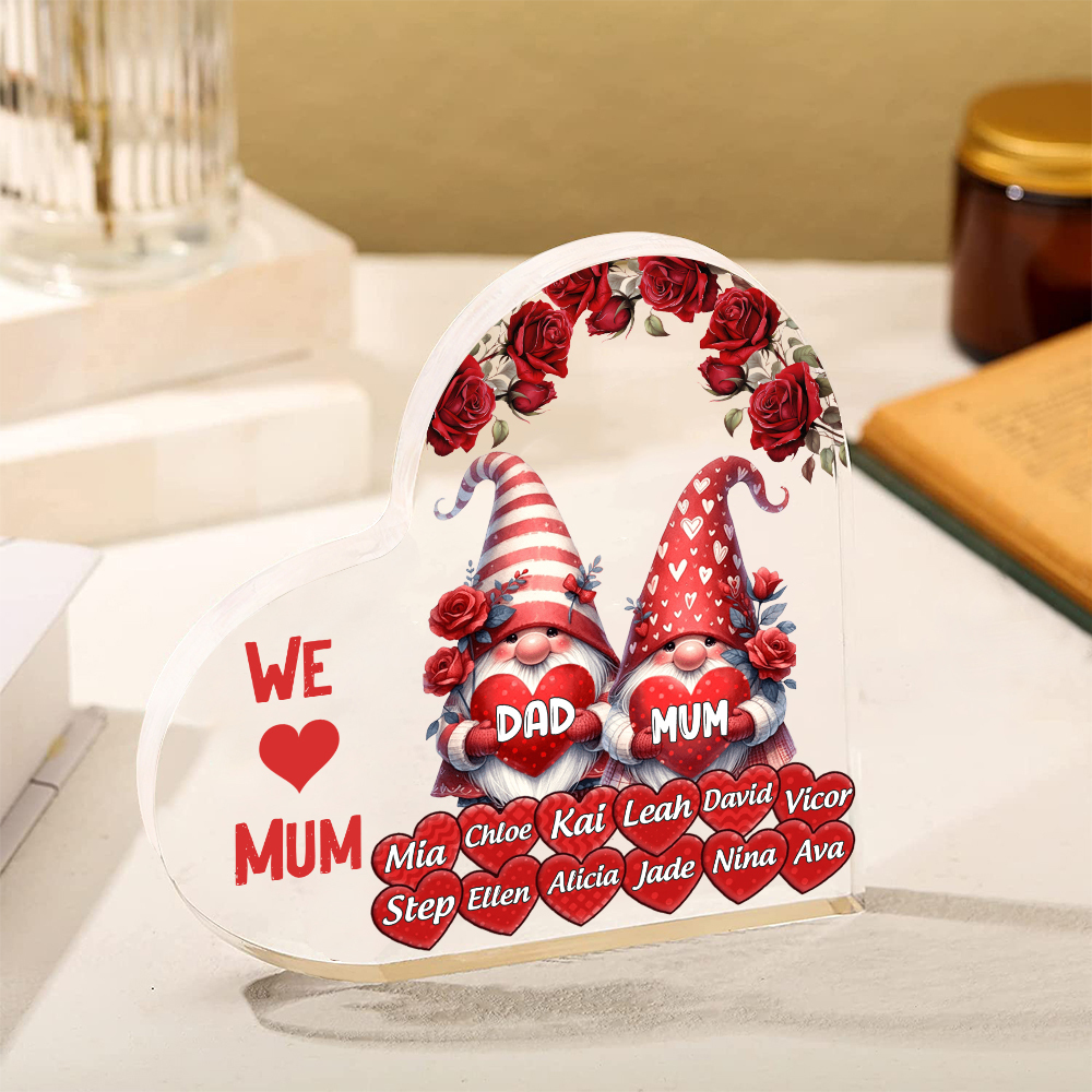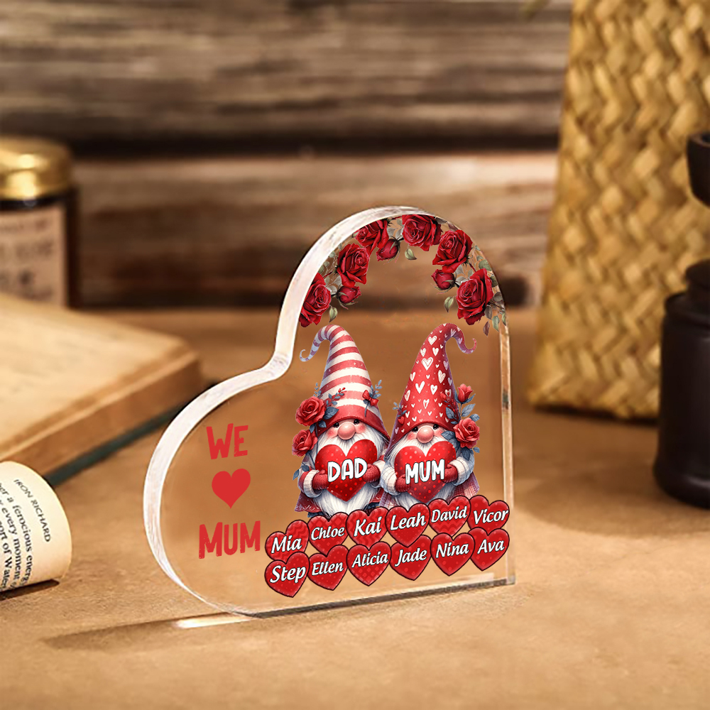 14 Names-Personalized Family Dwarf Acrylic Ornament-Custom Text Acrylic Family Heart Keepsake Desktop Ornament For Family