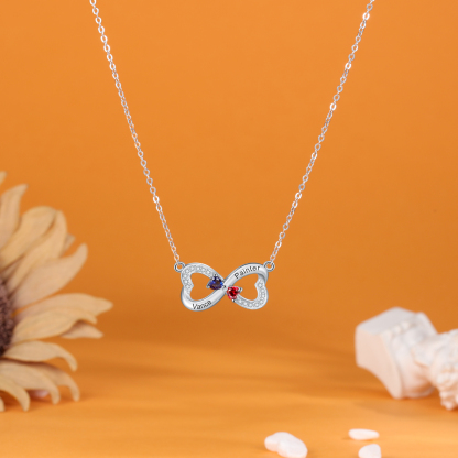 Personalized Heart Mother Necklace With 2 birthstones Engraved Names Gift For Women