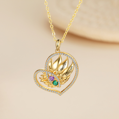 Personalized Heart Necklace With 2 Birthstones Engraved Names Necklace Gift For Women