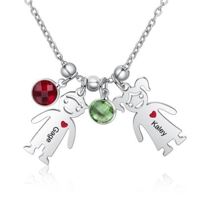 Personalized Kids Charm Necklace With 2 Birthstones Engraved Names Gift For Mother