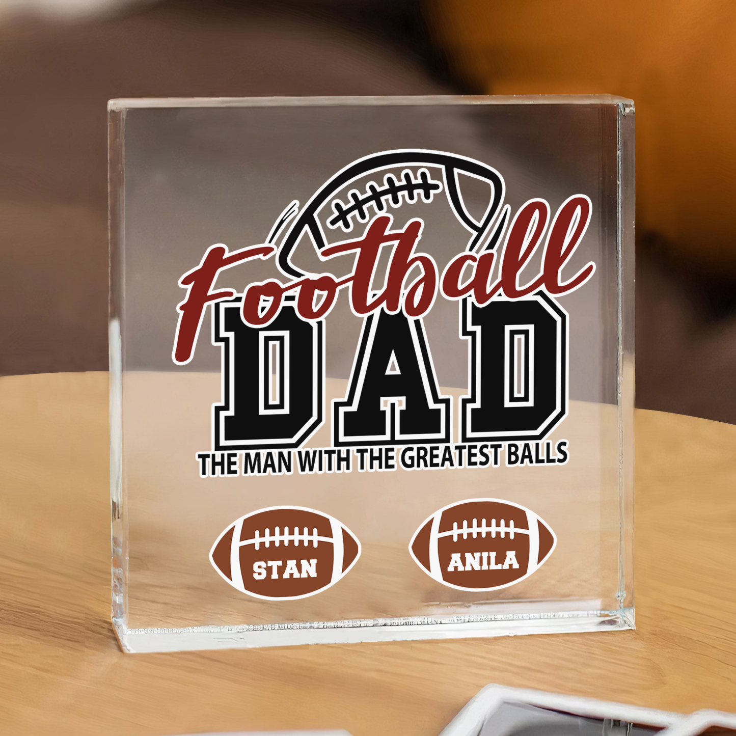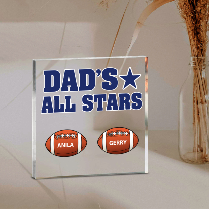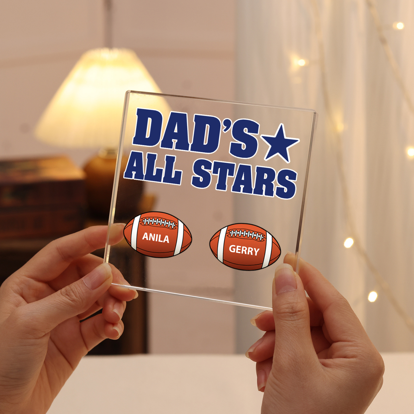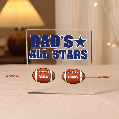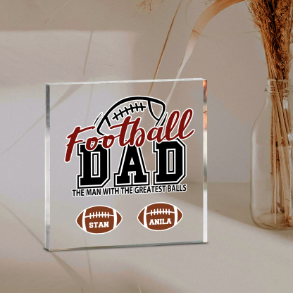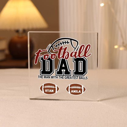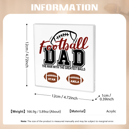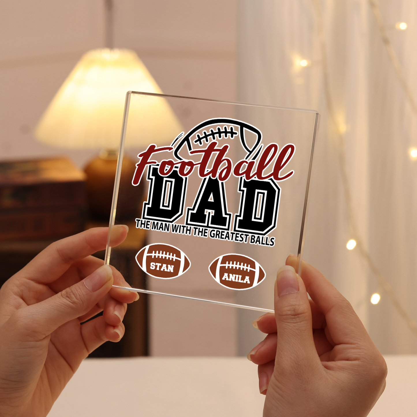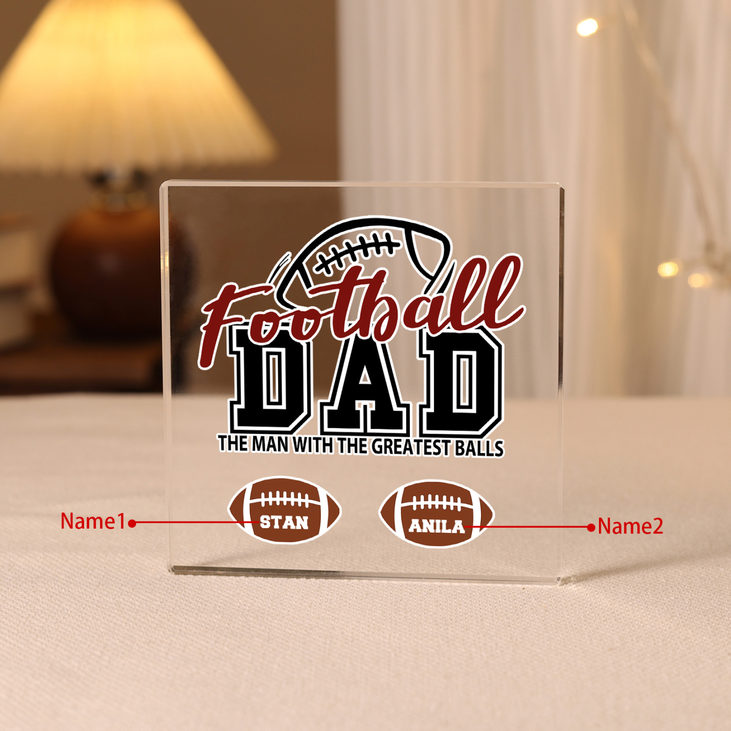 2 Names - Personalized Football Acrylic Keepsake Customized Name Acrylic Plaque Decoration Father's Day Gift for Dad