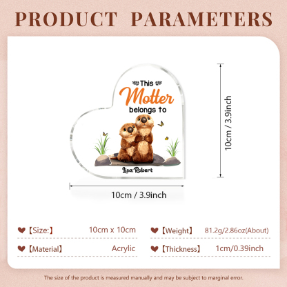 2 Names Personalized Mom Bear With Kids Personalized Acrylic Heart Keepsake Custom Text Acrylic Plaque Ornament Gift for Grandma/Mom This Motter Belongs to...