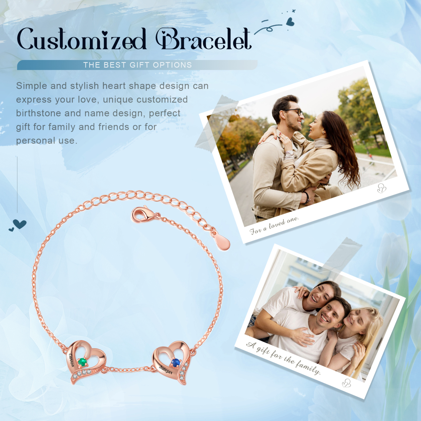 2 Names-Personalized Woman Bracelet With 2 Birthstone Custom Names Bracelet Gift For Women