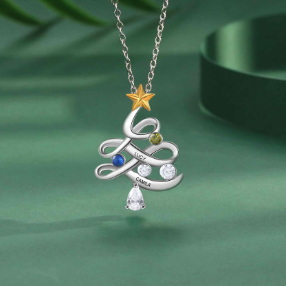 2 Names-Custom Women Pearl Link Necklace With Birthstones, Personalized 1-5 Names And Birthstones Necklace for Her